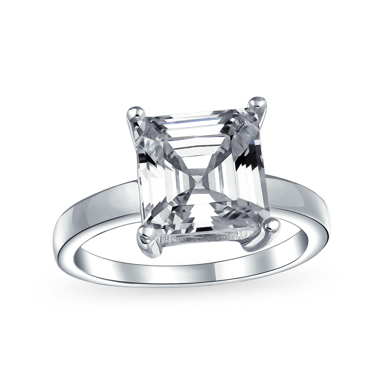 Classic 3CT AAA CZ Asscher Cut Solitaire Engagement Ring in Sterling Silver