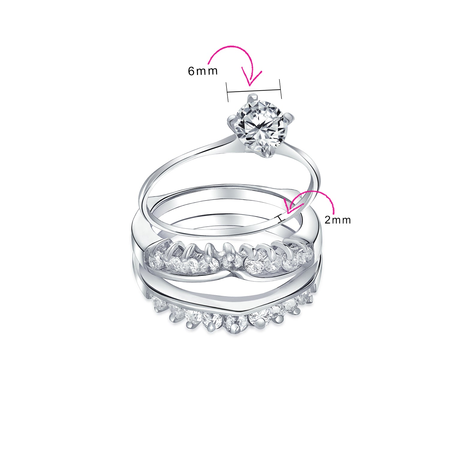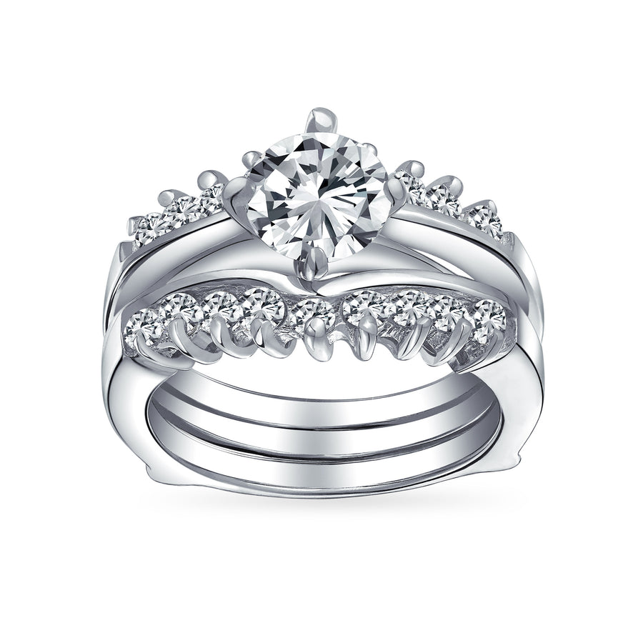 - Celebrate your love with this stunning promise ring set. Featuring a 0.75 carat round-cut CZ solitaire and a matching ring guard with sparkling CZ accents (approx. 1 carat total), this rhodium-plated sterling silver set offers timeless elegance. Ideal for anniversaries, travel, or as a romantic placeholder ring.