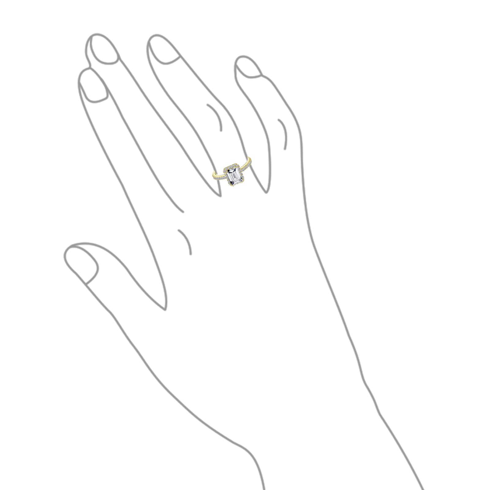 • Make a statement with this timeless Art Deco-style ring featuring 3CT halo-set cubic zirconia emerald cuts. Crafted in .925 sterling silver, it’s perfect for promises, travel, or special occasions. Accented band surrounded by glistening pave cz's as well.