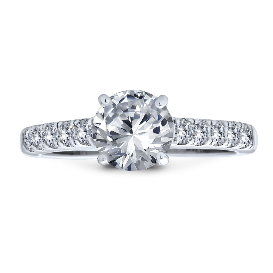 - ELEGANT DESIGN FOR YOUR LOVED ONE - Delicately feminine, this sterling silver engagement ring will captivate her. Showcasing a dazzling .75 CT round cut CZ solitaire stone, perfectly enhanced by a shimmering pave CZ band. Size 5 ring.