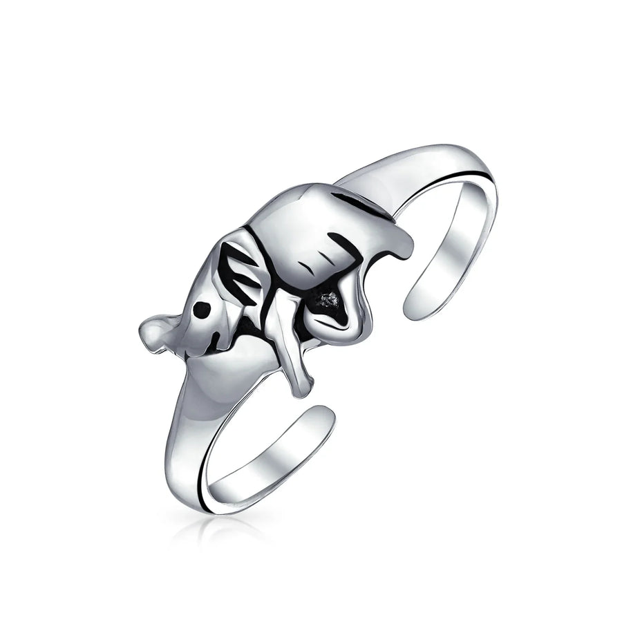 - Enhance your unique style with our lucky elephant midi rings. Perfect for summer, they adorn fingers and toes stylishly. Designed for between knuckles, as pinky rings, or adjustable toe rings. This must-have accessory is ideal for animal lovers. An elephant with its trunk up symbolizes good luck. Stand out with sterling silver stackable rings. Achieve a super cute, on-trend look this season. Easily adjustable to fit most finger and toe sizes. Order these affordable mid knuckle rings for fashionable friends today.