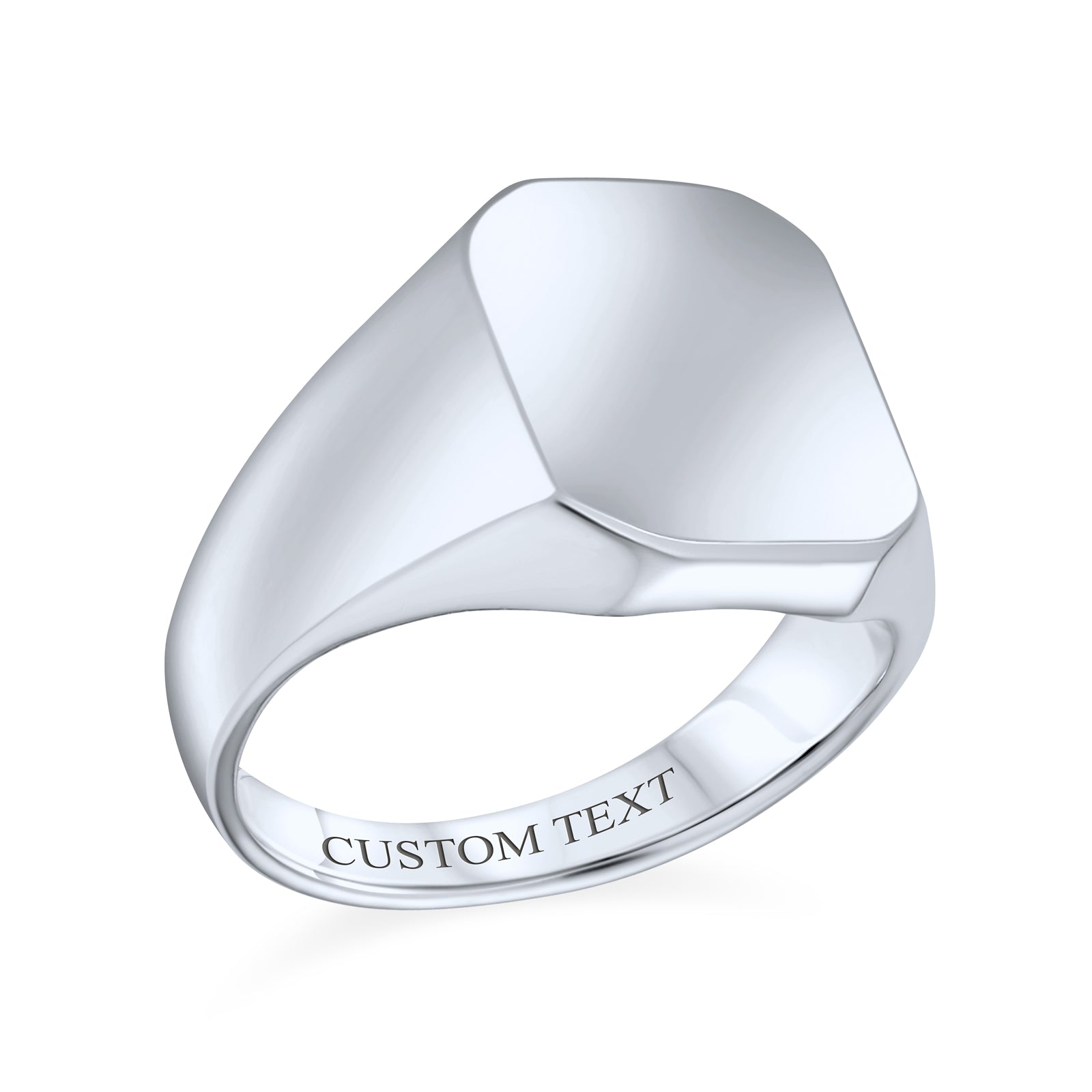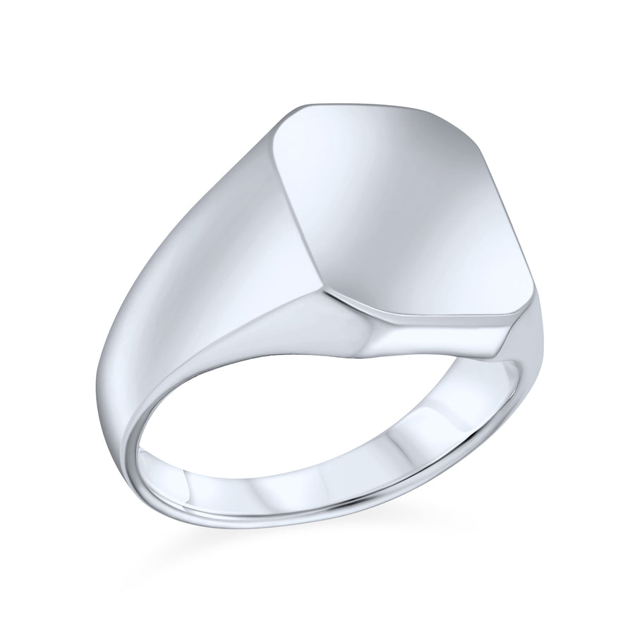 - This large men's sterling silver signet ring features a 5mm smooth band for a comfortable fit. The polished 925 sterling silver flat surface shines brightly, making it a modern and stylish choice for fashionable men. Ideal for Father's Day and graduation gifts, this personalized silver signet ring is a timeless keepsake. Engraved jewelry is a classic gift for him.