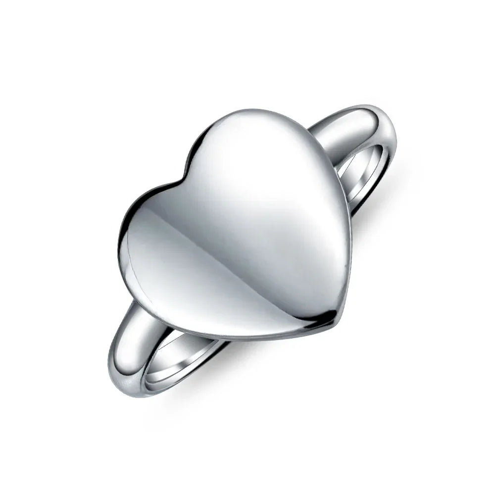 - initial Promise rings for her are an easy way to say I Love You and add a romantic touch to any look. This flat heart has a stamped letter in its sparkling sterling silver. This is a great fashion gift and a beautiful alphabet script or block addition to your jewelry box.