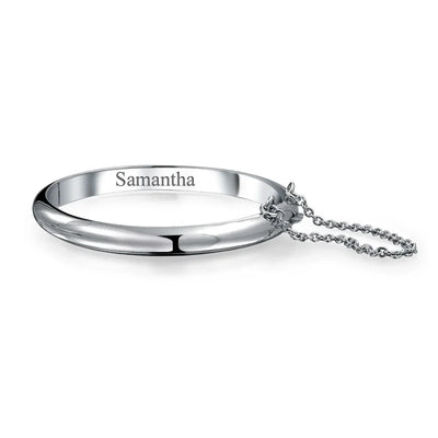 - Searching for gifts? Our 925 sterling silver bangle bracelet is perfect. Personalizable, shiny, and fits up to a 5-inch wrist. Ideal keepsake for new moms.