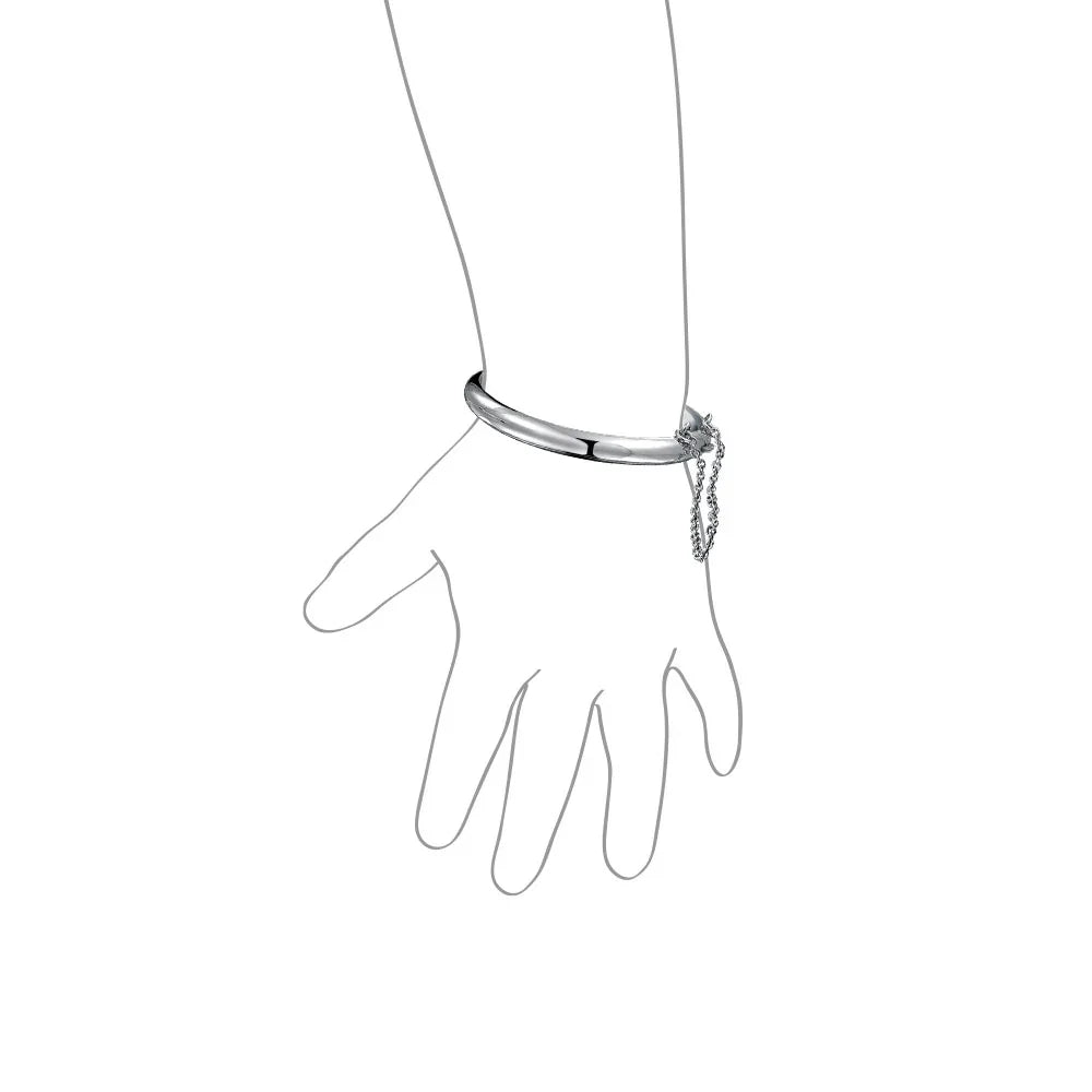 - ELEGANT DESIGN - This stunning bangle bracelet is a perfect gift for your special someone. Crafted from high-quality .925 silver, it boasts a domed bangle design with a sleek high polish finish and delicate chain detail accent. A thoughtful and elegant gift for the woman in your life.