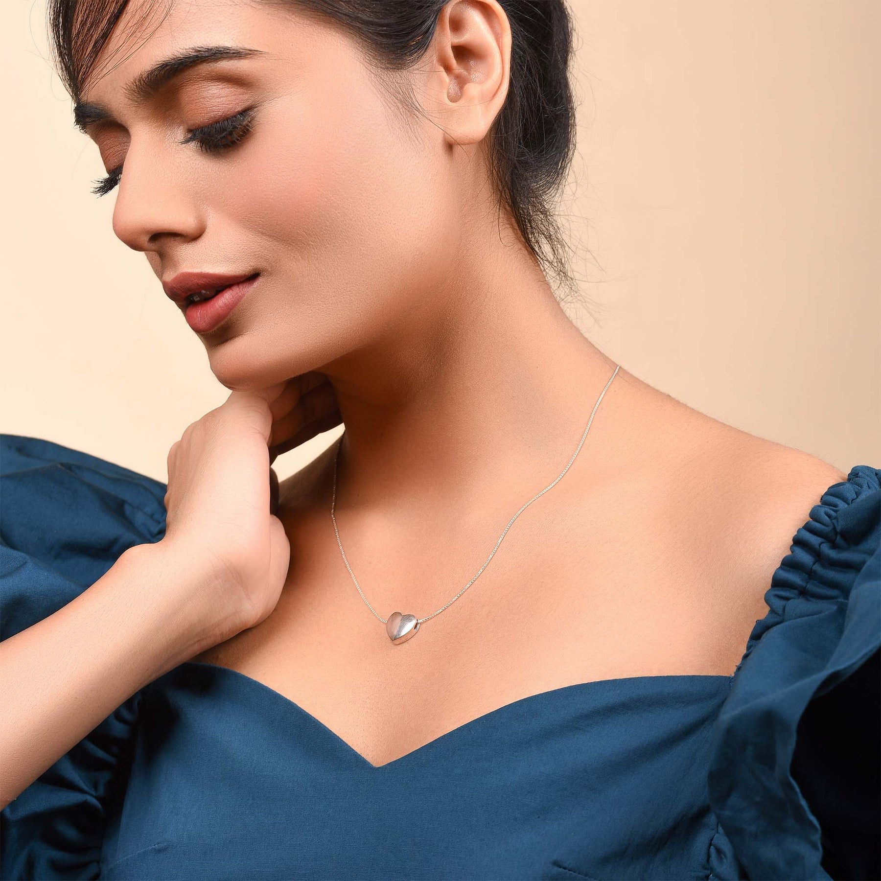 - Enhance her fashionable look with this elegant .925 Sterling Silver heart pendant necklace. Versatile and lovely, it's a winning choice. The sliding heart pendant on a thin .925 Sterling Silver box chain is secured with a spring ring clasp. Perfect for Valentine's Day, anniversaries, or any day. Gift this affordable necklace to your wife, friend, daughter, or yourself. At just 3.3 grams, she'll never want to take it off. Love is in the air.