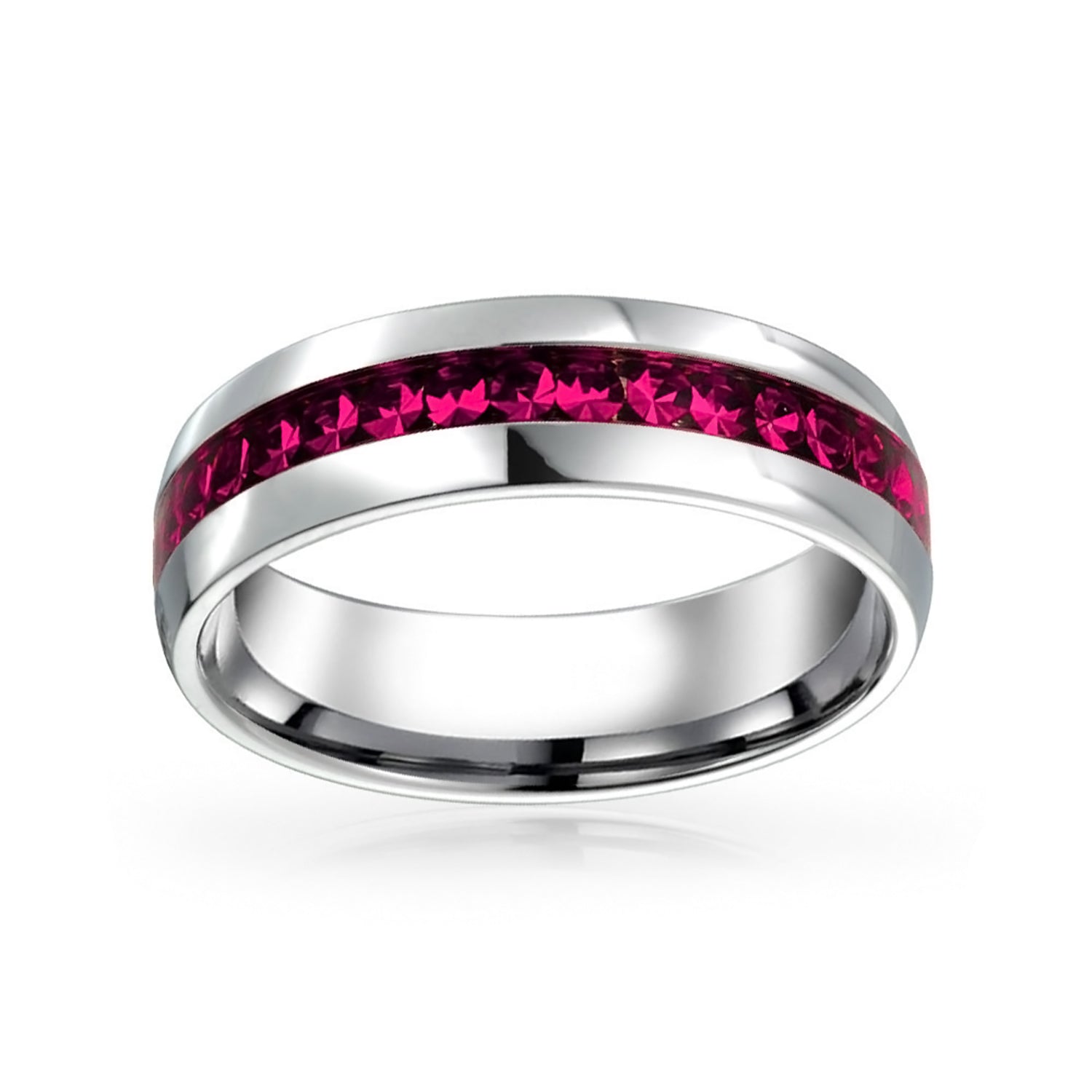 - Add a touch of glamour with our Color Crystal Eternity Bands. Crafted from stunning stainless steel, these Birth Month rings add vibrant color. Perfect for everyday wear or special occasions, they exude elegance and style. The classic channel setting showcases vibrant crystals. This 6mm wide ring is versatile for stacking or wearing alone. Ideal as Birth Month jewelry or an anniversary gift. Explore our collection and find your favorite color today.