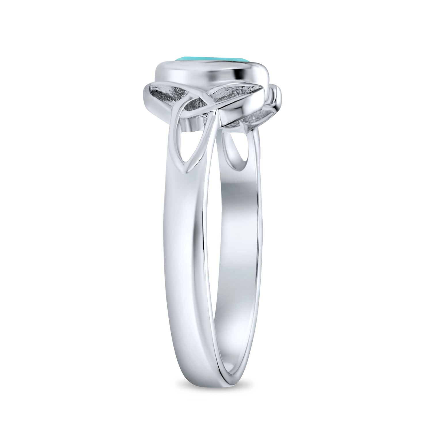 - Herald your heritage with a hint of hue. Our unique triquetra ring shows off a traditional Celtic symbol as well as beautiful color. This sterling silver jewelry has a polished band with two Knots that flank a gorgeous, oval shape stabilized turquoise stone. This simple yet significant Celtic ring can be worn both during the day with your work or school clothes, or out on the town at night. Get one for yourself or give our Celtic jewelry as a birthday or graduation gift to loved ones. Tie up any loose ends in your look with our Celtic Knot ring.