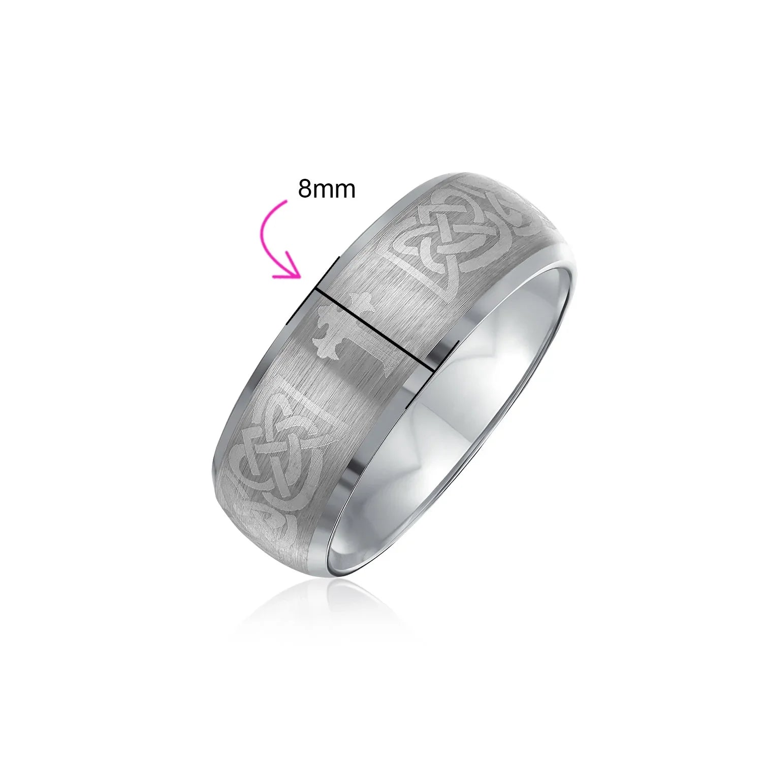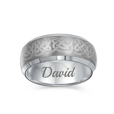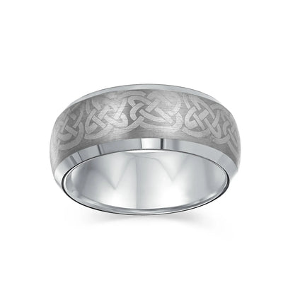 Titanium Wedding Band Ring Celtic Knot Infinity Etched 8MM Matte Silver Tone