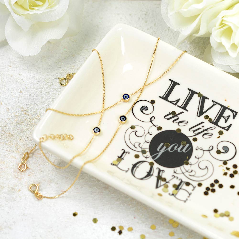 • A talisman to ward off bad spirits and attract good luck, this Gold Evil Eye Bracelet is a perfect gift. For centuries, friends and family have bought evil eye bracelets to keep negative energy away. Buy this exquisite Gold Evil Eye Bracelet today.