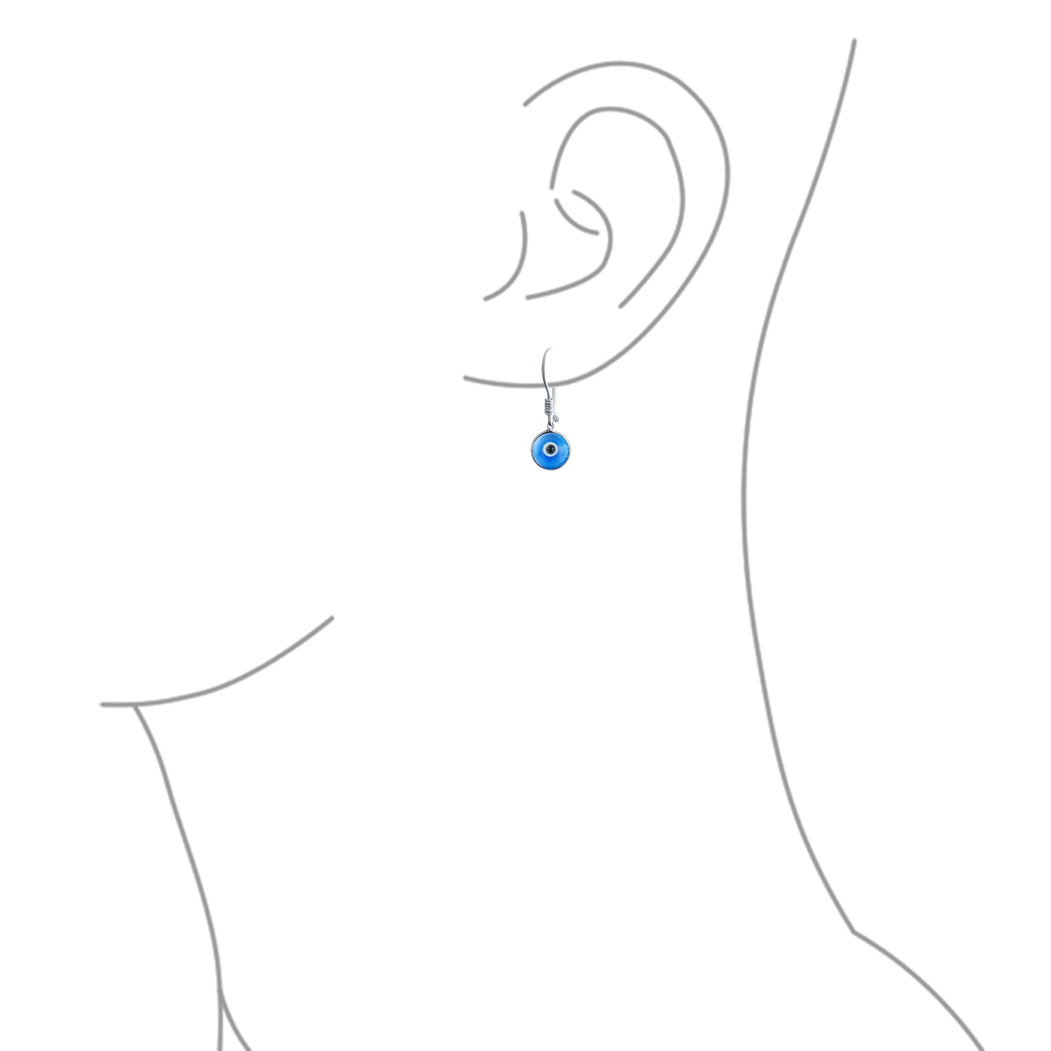 - Introducing our stunning Evil Eye Blue Dangle Earrings, a chic blend of style and mystique. Crafted with care, these enchanting earrings feature a remarkable round glass blue evil eye, surrounded by stunning .925 sterling silver. Inspired by ancient Middle Eastern beliefs, these delicate earrings offer a touch of protection. Feel confident and turn heads with their unique, trendy look. Perfect for special occasions or everyday glamour. These fashionable evil eye studs are the ideal accessory. Looking for a thoughtful gift? These earrings make a perfect present, embracing the beauty and symbolism of the evil eye. Give the gift of style and protection with these exquisite earrings.