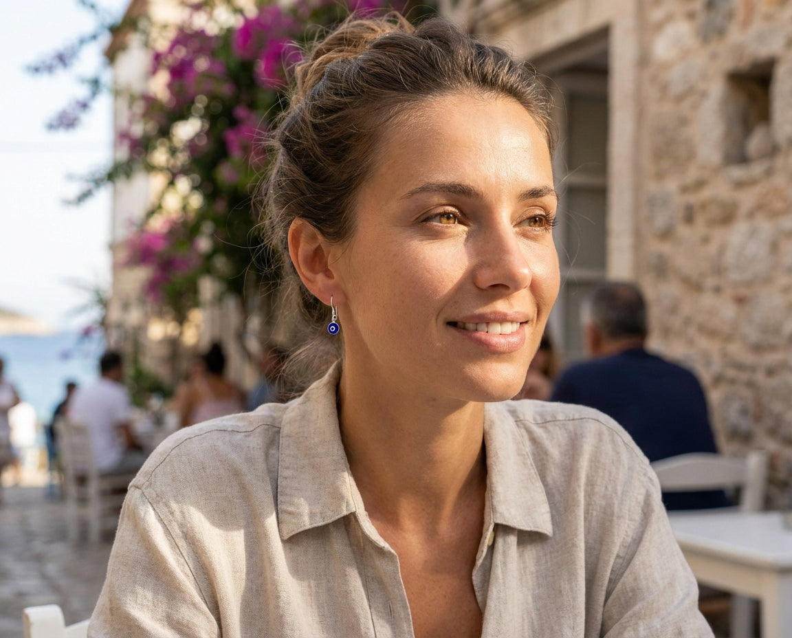 - CHIC SPIRITUAL EARRING STYLE - Elevate your style with these enchanting sterling silver earrings that combine mystical healing powers of protection with a playful and dainty glass dangling evil eye design. Handcrafted in Turkey, these earrings are a captivating addition to any outfit.