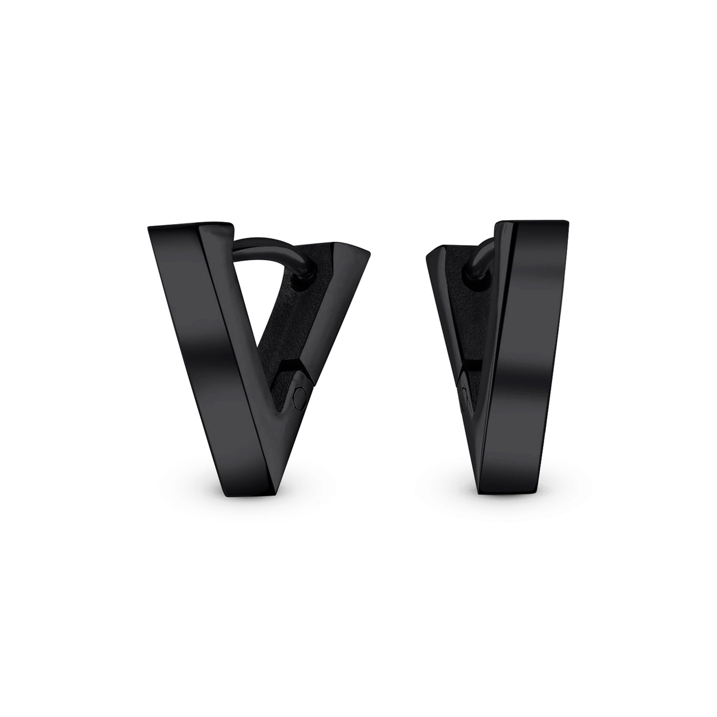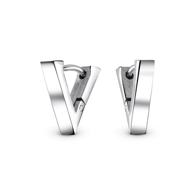 - For brilliant style with geometric flair in a unisex design, choose these eye-catching stainless steel huggie hoop earrings. Highlighted by a modern triangular shape, with bold lines and a punk rock feel.