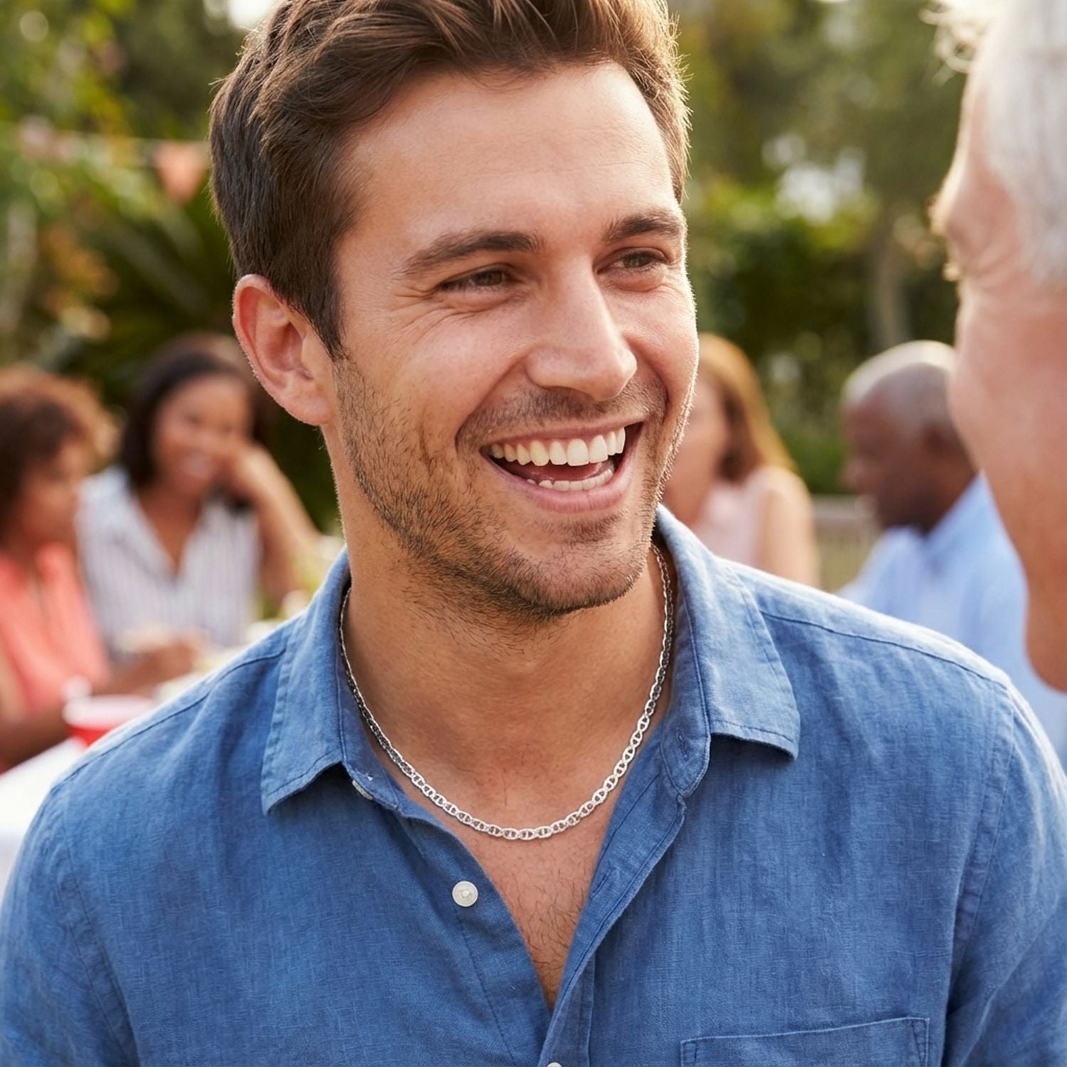 - Masculine mens chain link, offering a sophisticated appearance commonly known as the Mariner or Anchor chain, drawing inspiration from the nautical world. Its a beautiful choice for those seeking a sturdy and strong chain. With this style, you cant go wrong—ideal for a timeless and resilient look.