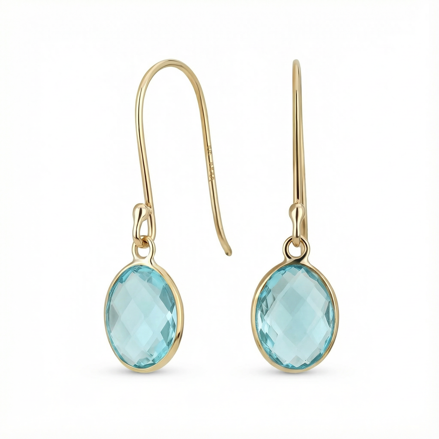 - Elevate your chic look with our stunning bezel set fish hook earrings. Perfect for ladies who love extra style. Featuring elegant oval gemstones, these earrings will make you shine. Affordable and fashionable, they should top every woman's wish list. Made with 10K gold, they resist tarnish and maintain their shine. Add contemporary style to your wardrobe with these beautiful earrings. Versatile and pretty, they pair with any outfit. Make a statement and elevate your style with these exquisite earrings.