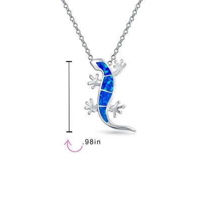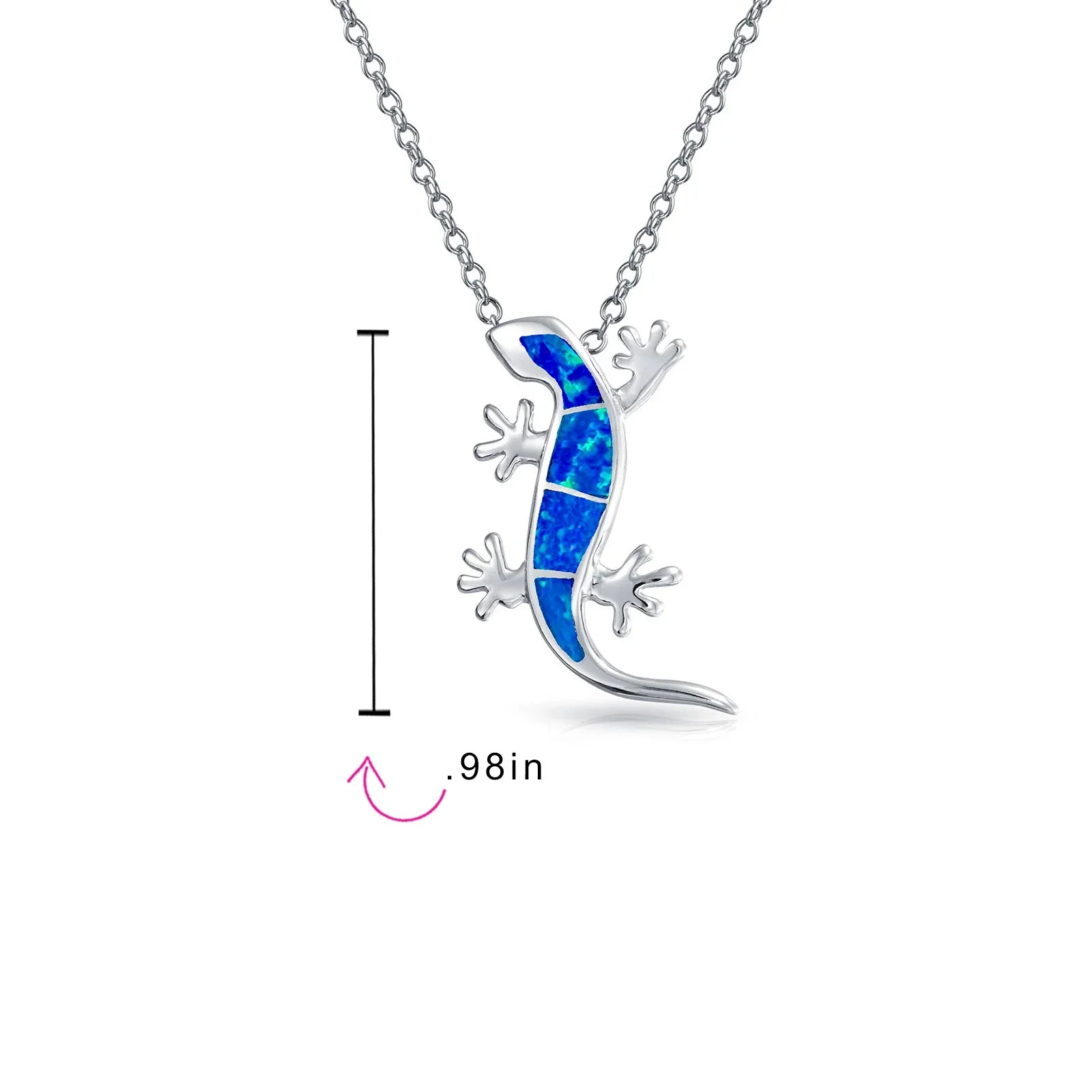 Nautical Tropical Green Opal Gecko Lizard Pendant Necklace in Sterling Silver