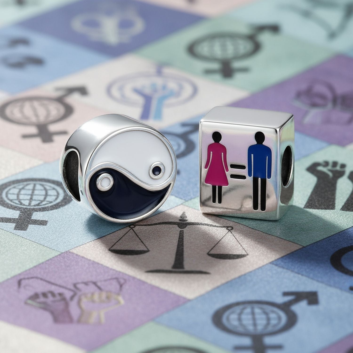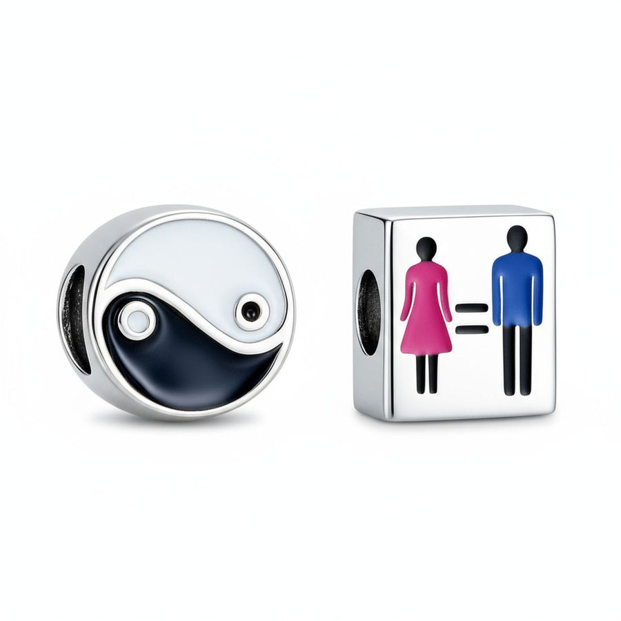 - Celebrate harmony, unity, and love with this elegant bead charm set. Crafted in lustrous sterling silver, this duo features two meaningful designs — a vibrant enamel equality charm symbolizing balance and inclusivity, and a classic yin yang bead representing the harmony of opposites. Together, they capture the ideals of love, luck, and spiritual connection. Perfect for adding depth and meaning to your charm bracelet or gifting to someone who values equality and peace, this set radiates timeless beauty and positive energy.