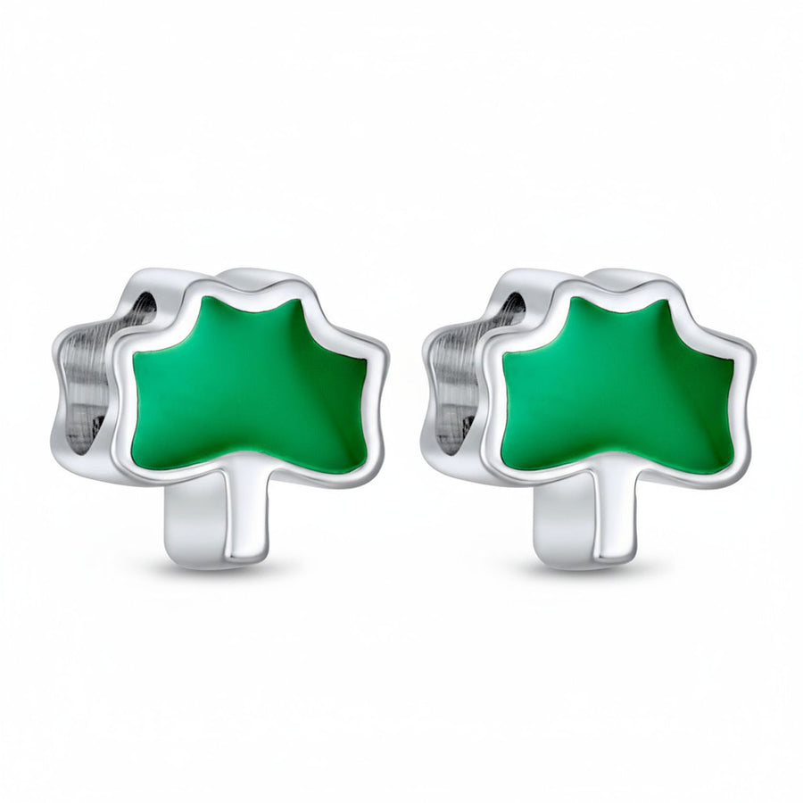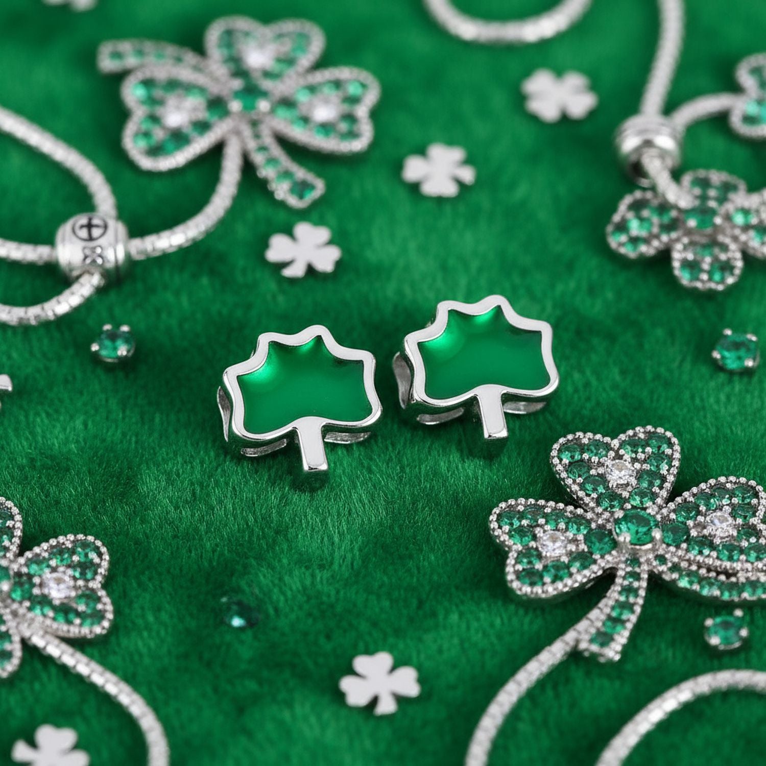 - This glam green enamel clover flower bead is crafted from .925 sterling silver. Featuring a shamrock clover design, it's perfect for St. Patrick's Day. Lightweight and dainty, it adds charm to any bracelet. Ideal for flower, spring, or luck-inspired themes. Fits most charm bracelets.