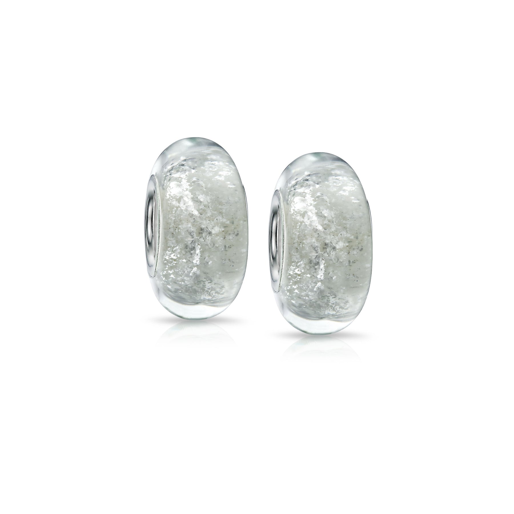 - This white Murano glass Lamp work bead is the perfect touch for your bracelet, with 5mm unthreaded core and reflective rainbow foil detail.
