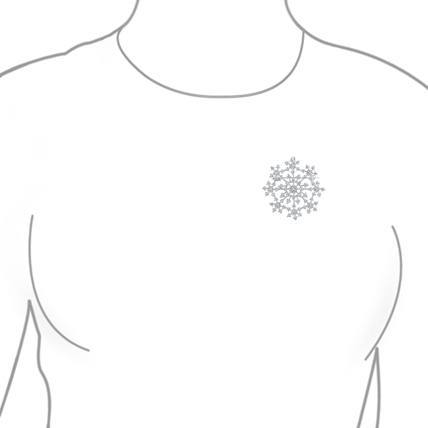 - Introducing our exquisite snowflake Brooch Pin, a blend of chic glamor and timeless elegance. Be captivated by its stunning design. This brooch features glittering round Cubic Zirconia stones in varying sizes, creating an alluring look. Crafted with care, this snowflake brooch is made from high-quality cu silver and rhodium plated for a lustrous finish. It has a hidden bail, transforming into a trendy snowflake pendant effortlessly. Its versatility knows no bounds. This brooch is a visual masterpiece and boasts a delicate wearing feel. Perfect for treating yourself or as a gift, this cubic zirconia snowflake brooch is an ideal choice.