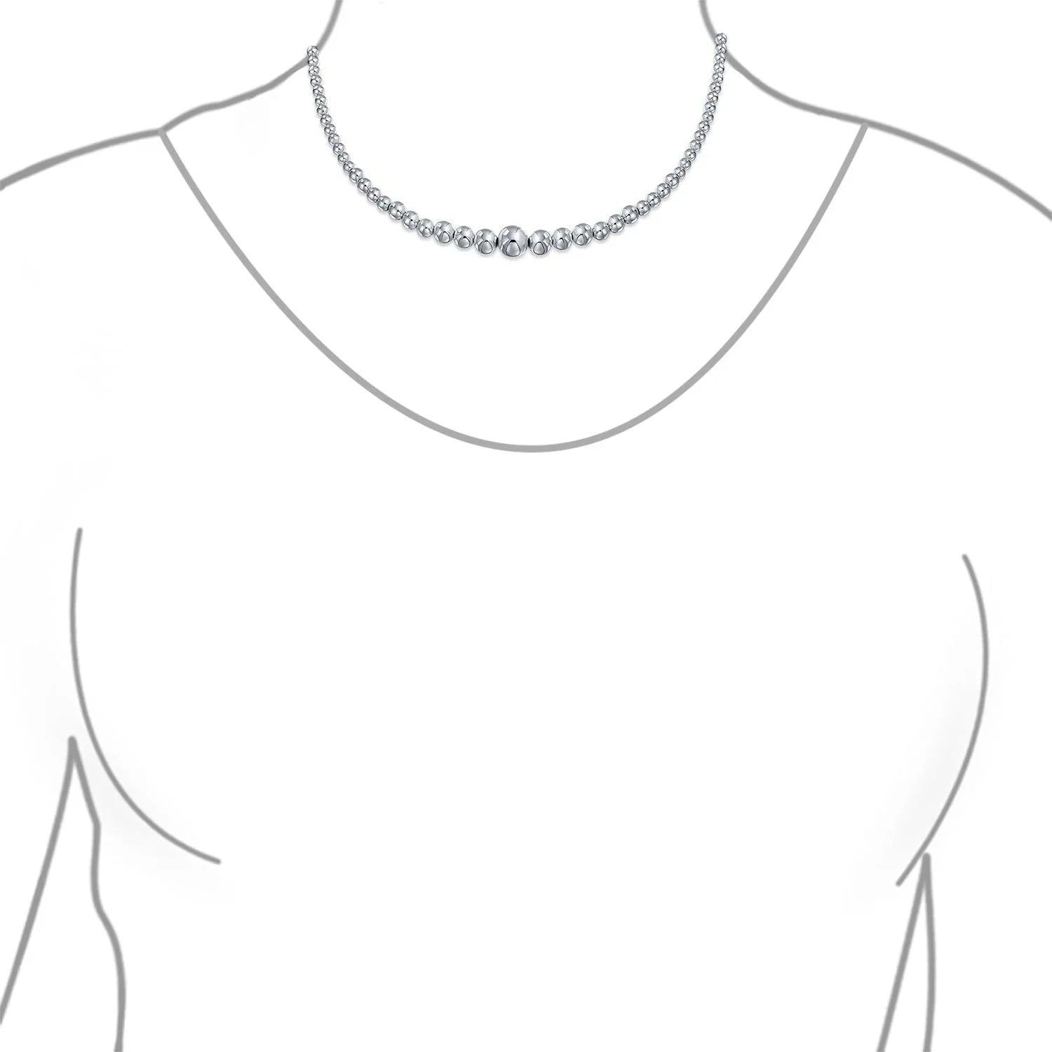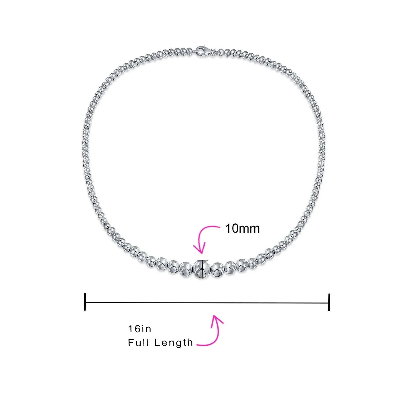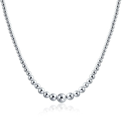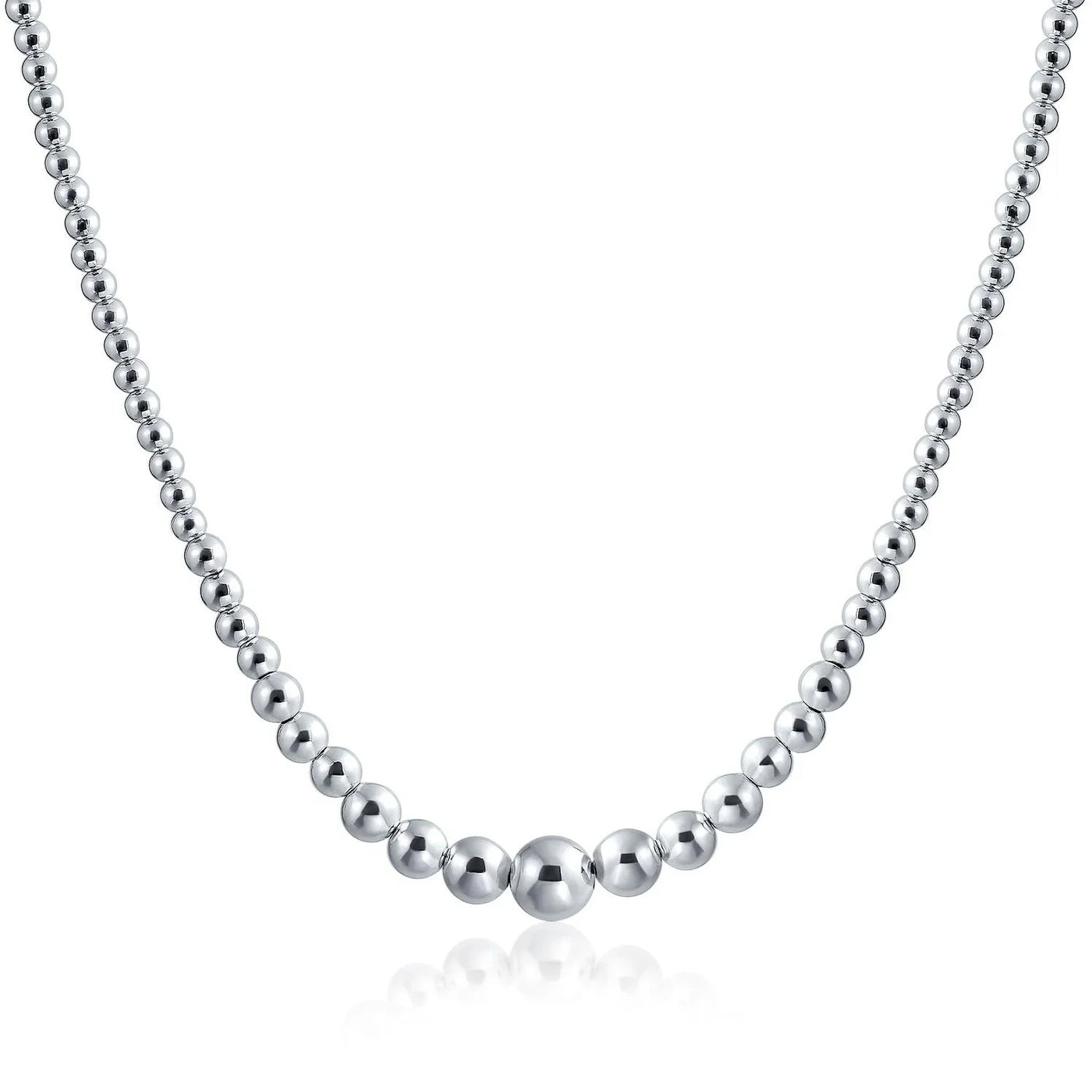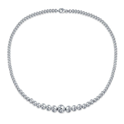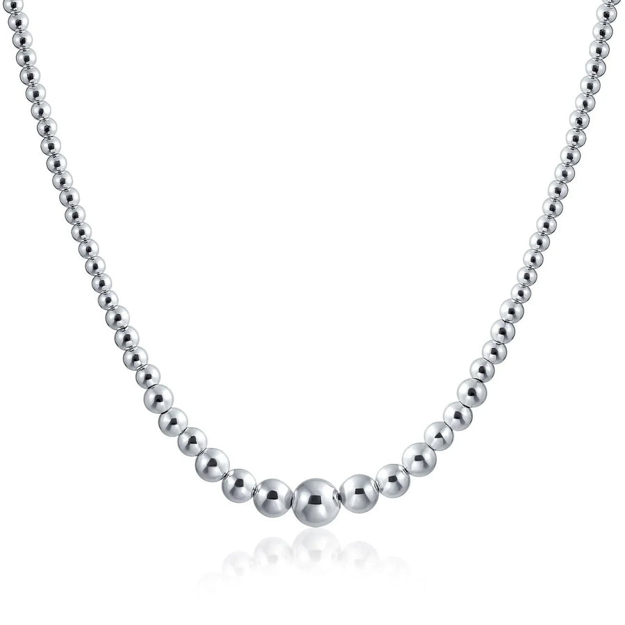- Ball necklace s boast a classic, pearl-like appearance. Crafted from .925 Sterling Silver, they shine brilliantly. The graduated design showcases fine craftsmanship. The largest bead sits prominently for maximum impact. Order your stunning Sterling Silver ball necklace today!