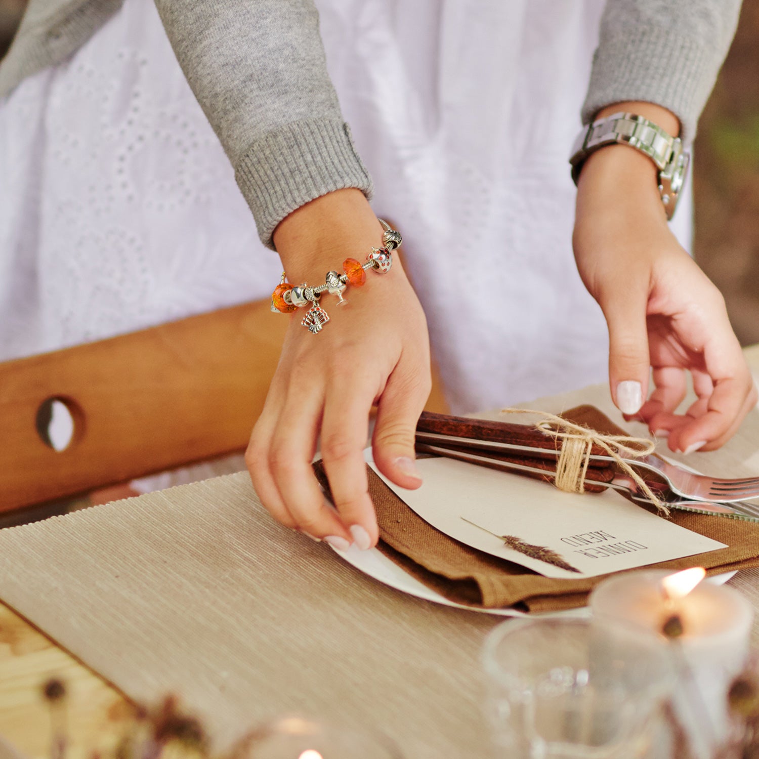 - A stunning solid starter bracelet to begin your bead story. This sophisticated .925 silver charm bracelet is highlighted by a snake chain design with an enchanting, barrel clasp, and provides a perfect canvas to showcase your favorite beads and charms.