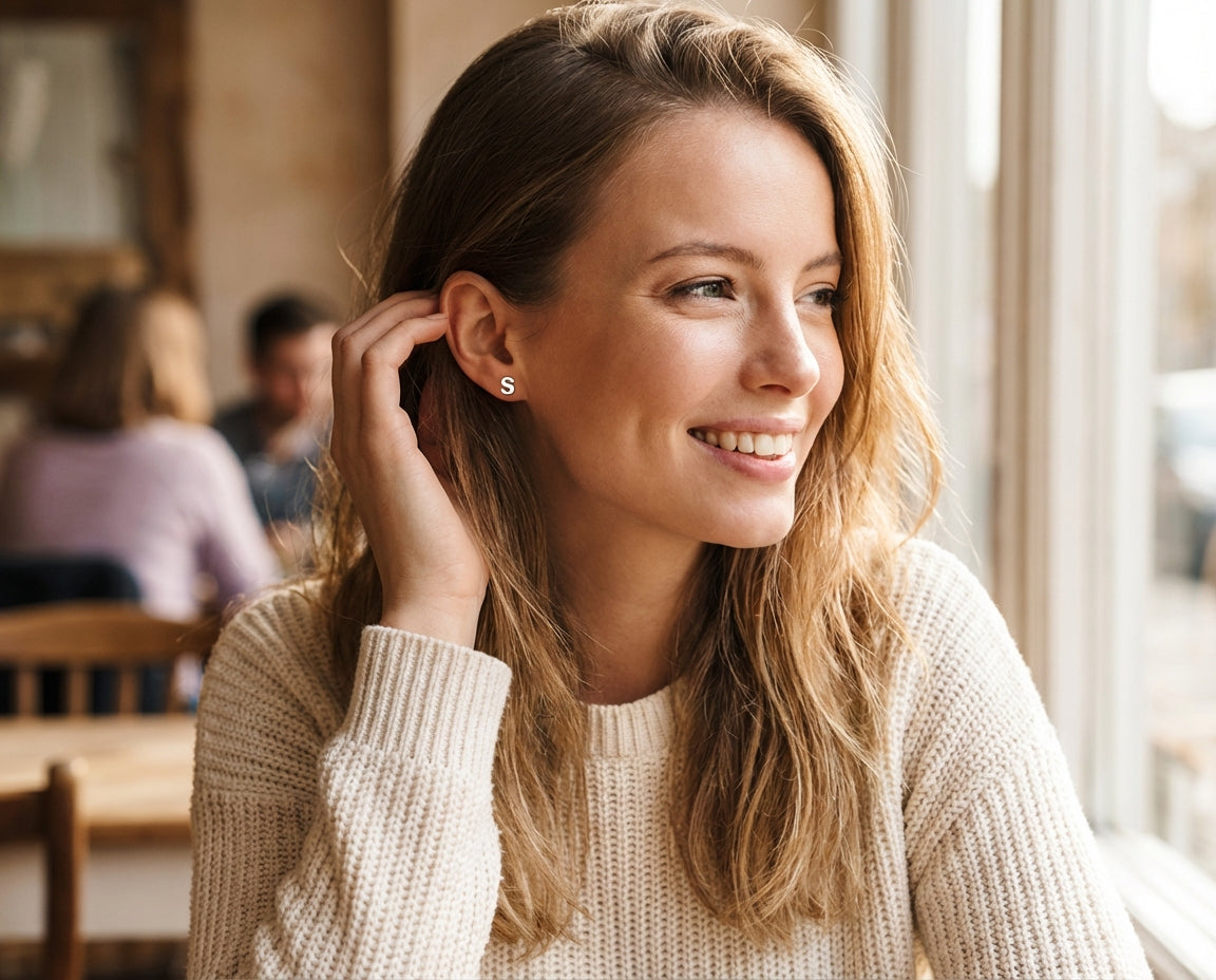 - CHIC PERSONAL DESIGN- Represent your initial with brilliant flair with these beautifully designed initial stud earrings. Our affordable silver stud earrings make it easy and fun to wear modern jewelry and add a unique touch to any ensemble.