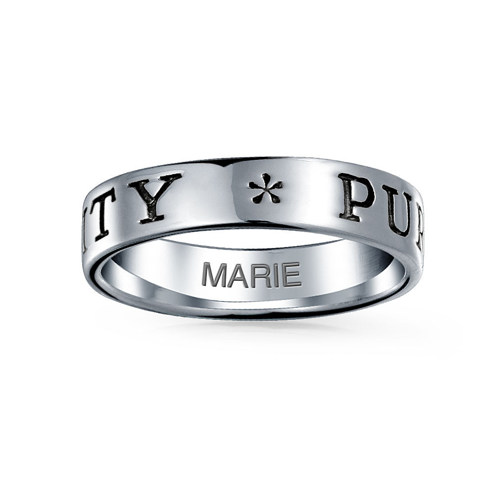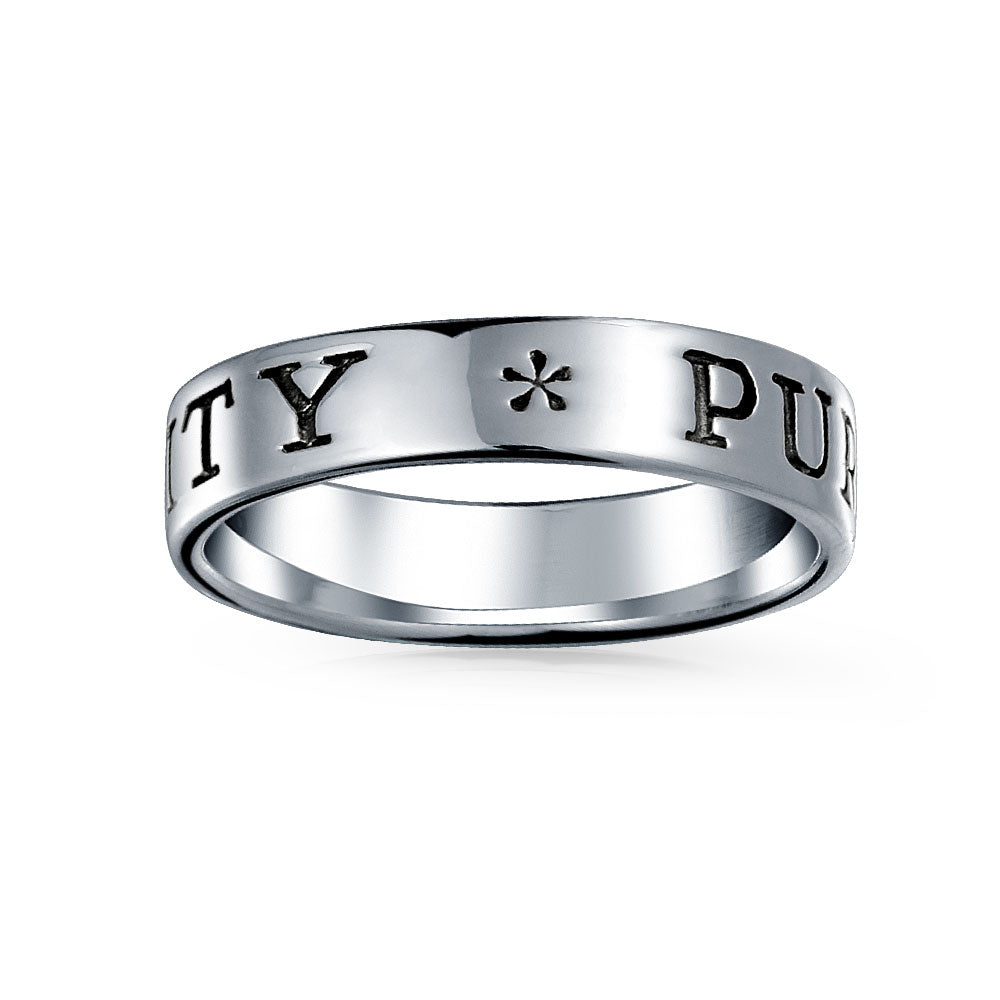 - With its meaningful STAY STRONG inscription, this sterling silver promise ring is a cherished keepsake. A purity ring symbolizes commitment between couples. The simple, elegant style of this sterling silver band with oxidized letters keeps it timeless. Our sterling silver purity ring band will remind her of your shared promise daily.