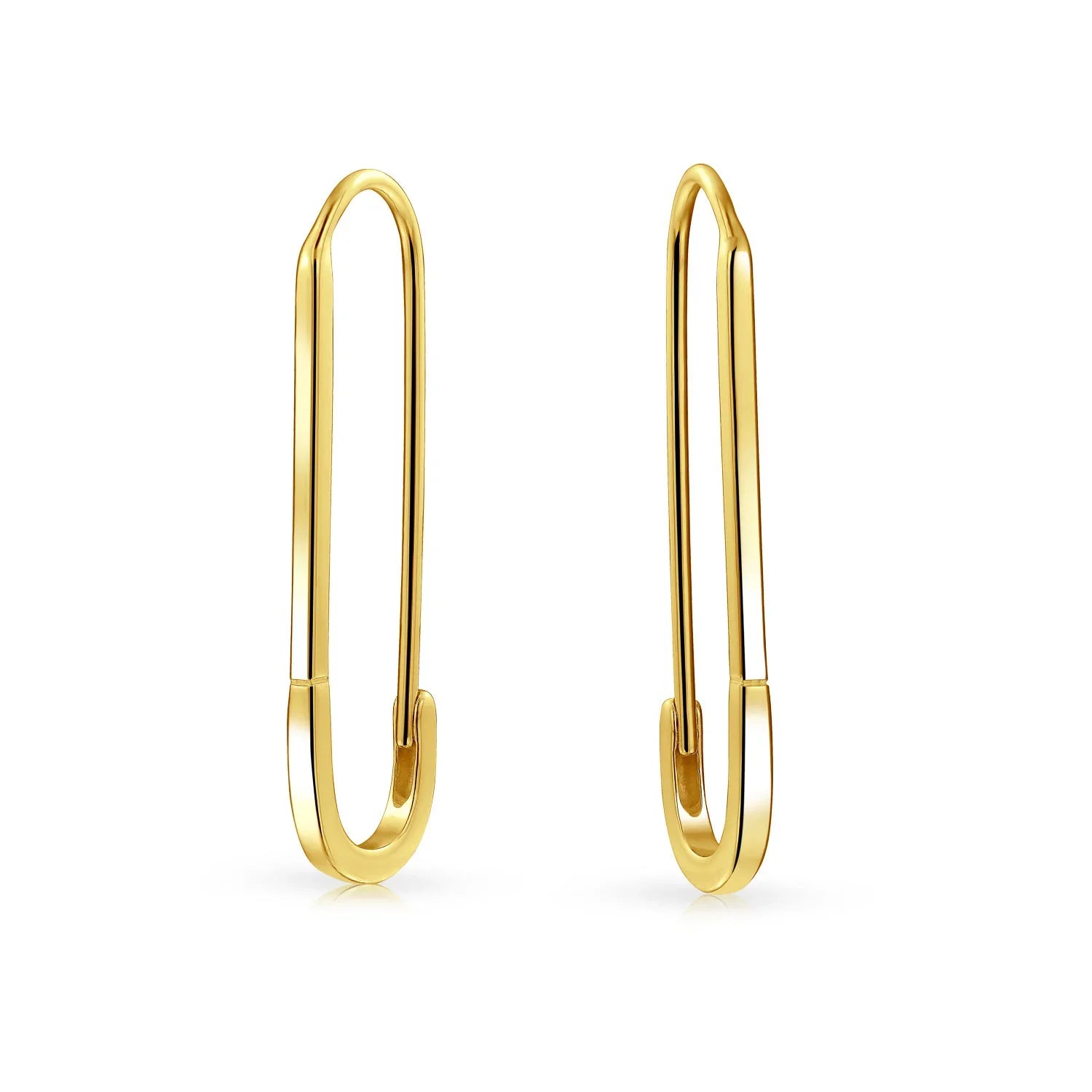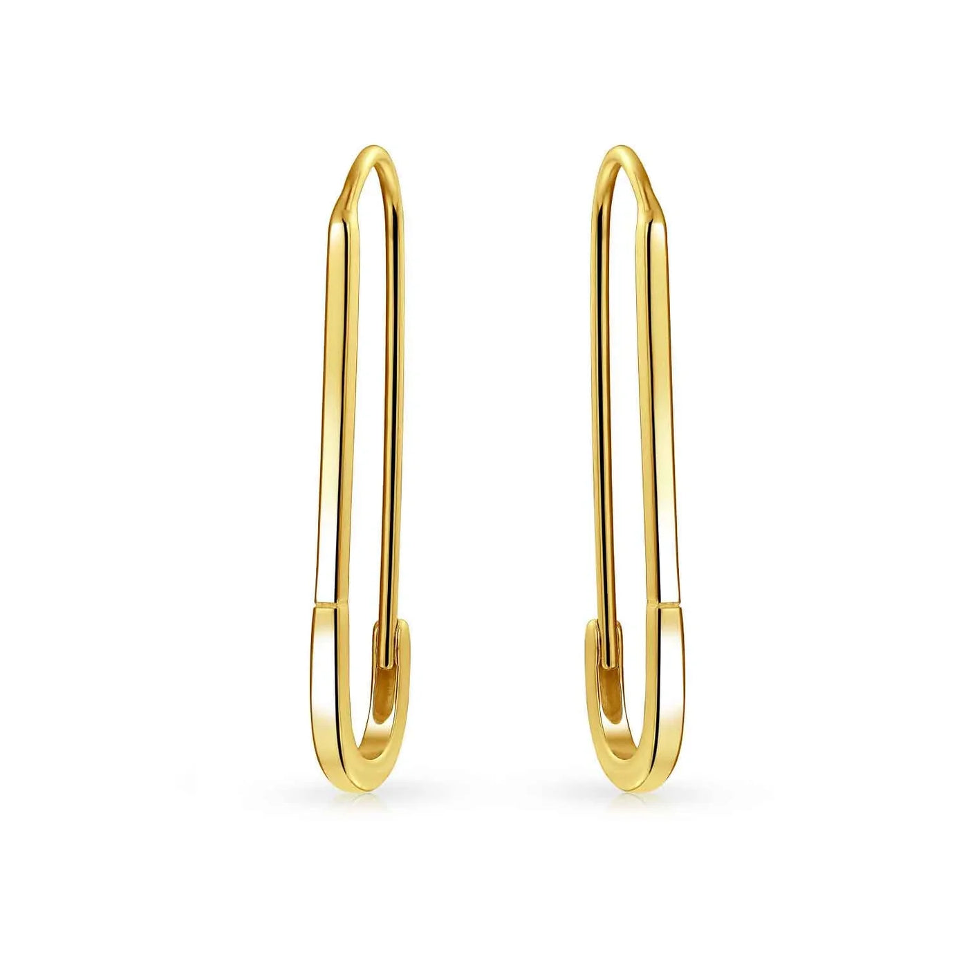Inspirational Safety Pin Dangle Earrings for Displaced People Gold Plated Silver