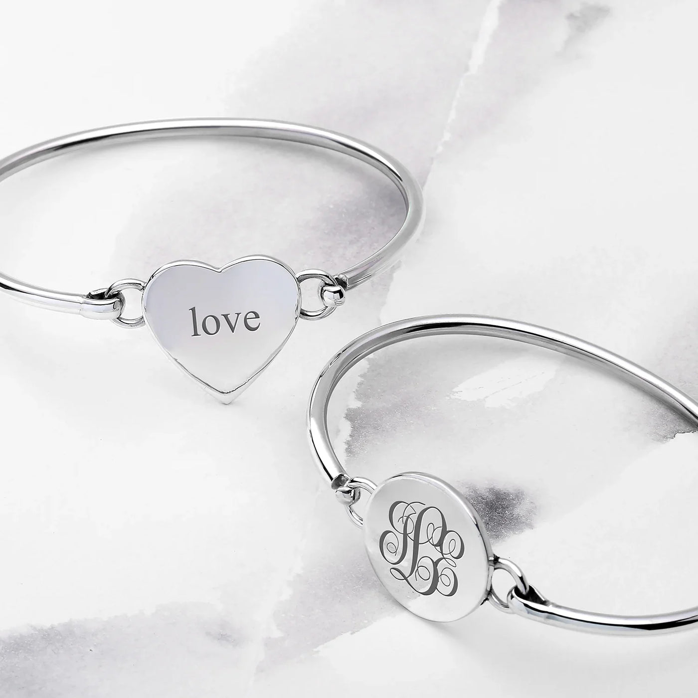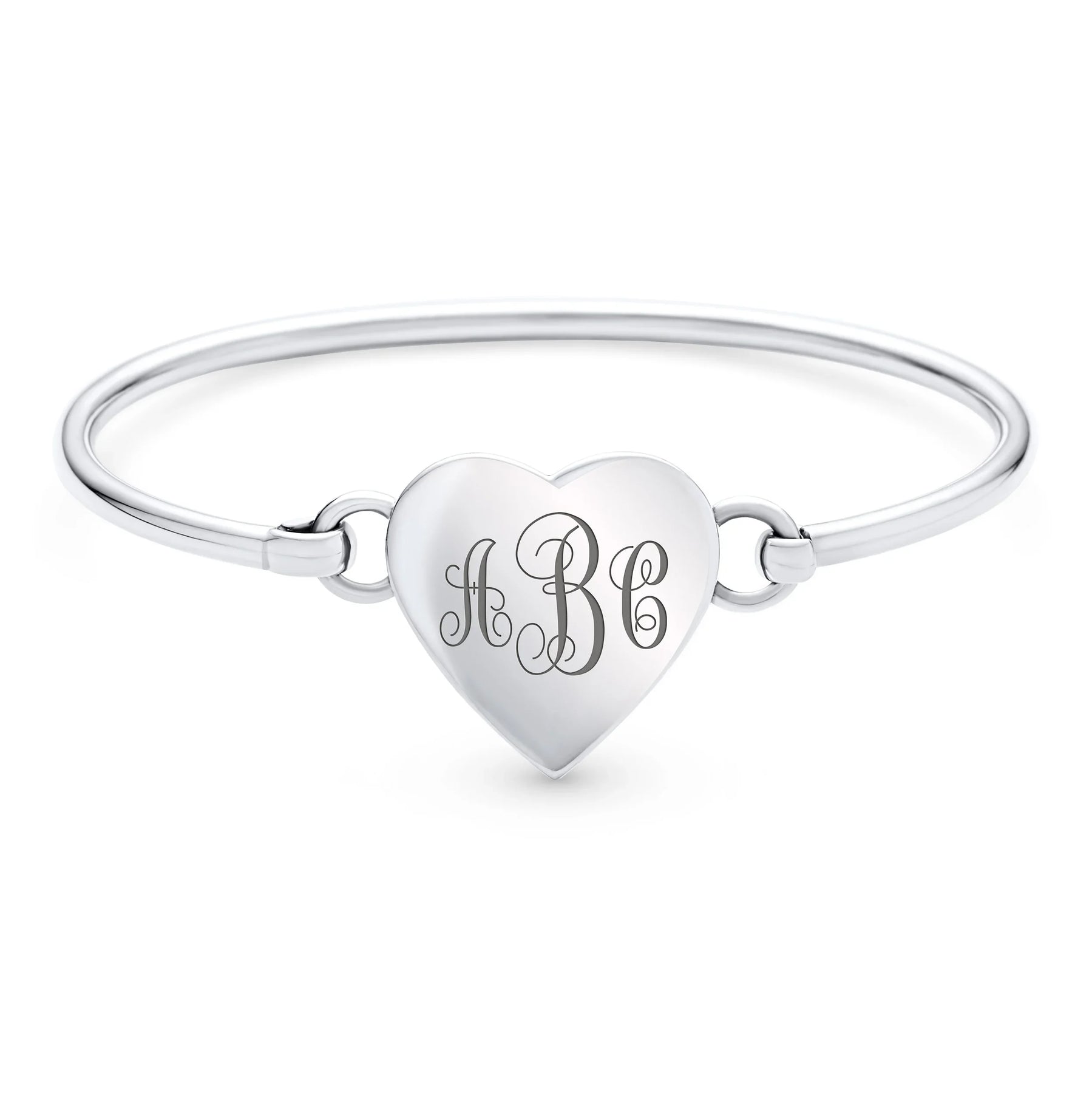 Initial Round Monogram Disc Heart Bracelet Bangle Sterling Silver Adjustable