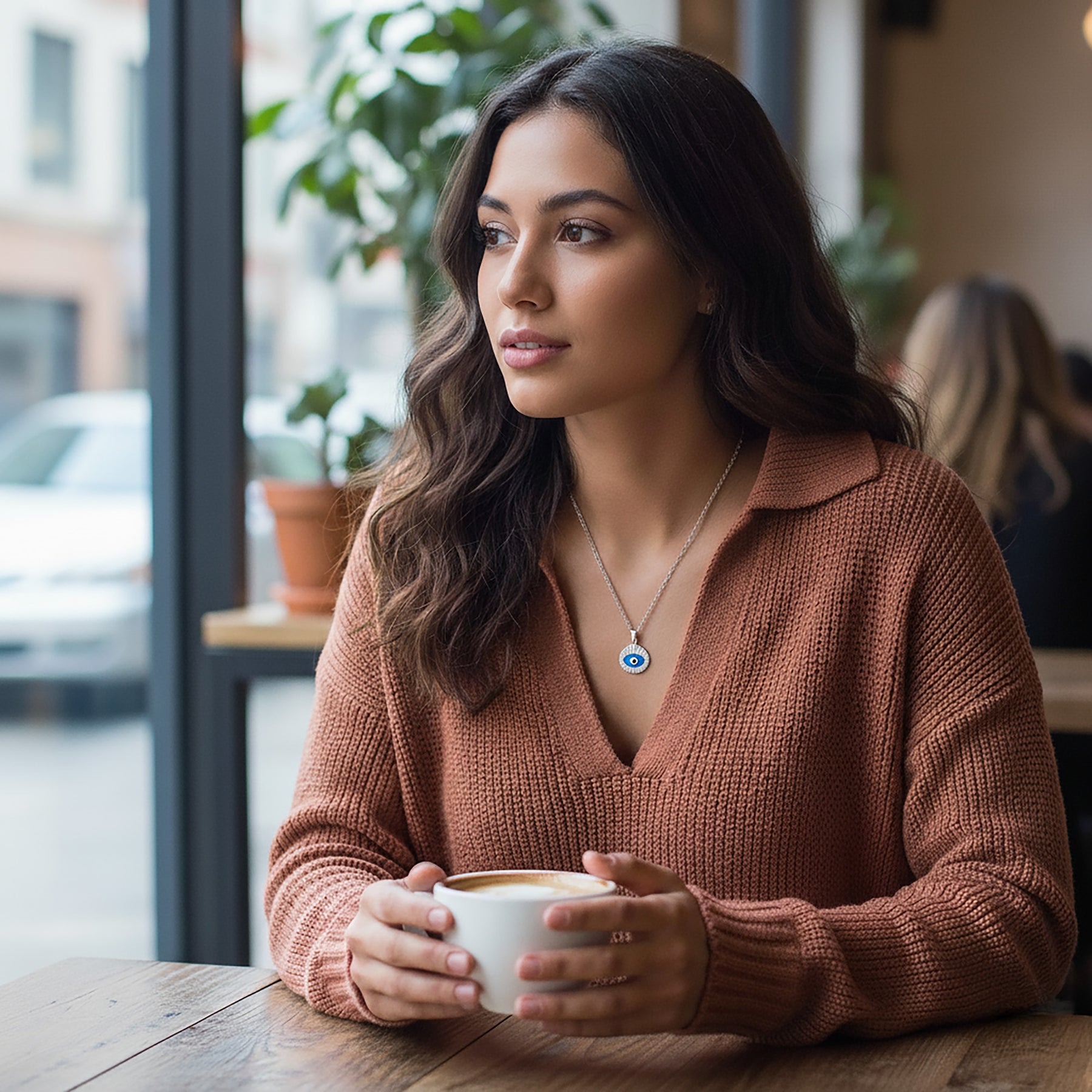- Beguiling mystical amulet necklace element to your style with this sublime layering charm. Highlighted by an enthralling, spiritual protection evil eye center.