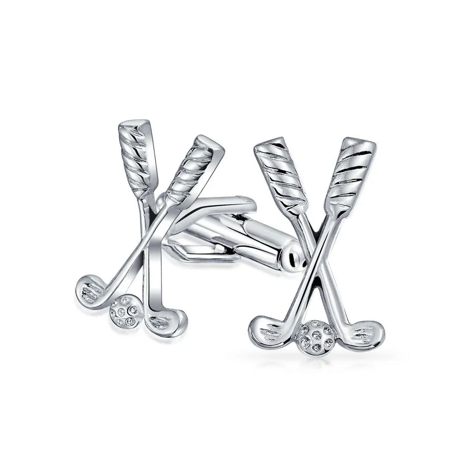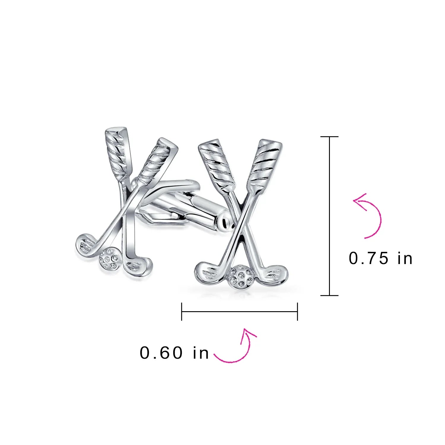 - Perfect for avid golfers, these cuff links feature crossed golf clubs and a ball. Ideal for work or play. Great groomsmen gifts. Made of brass, measuring 0.8" L x 0.5" W, and weighing 6.8 grams. Stay stylish!