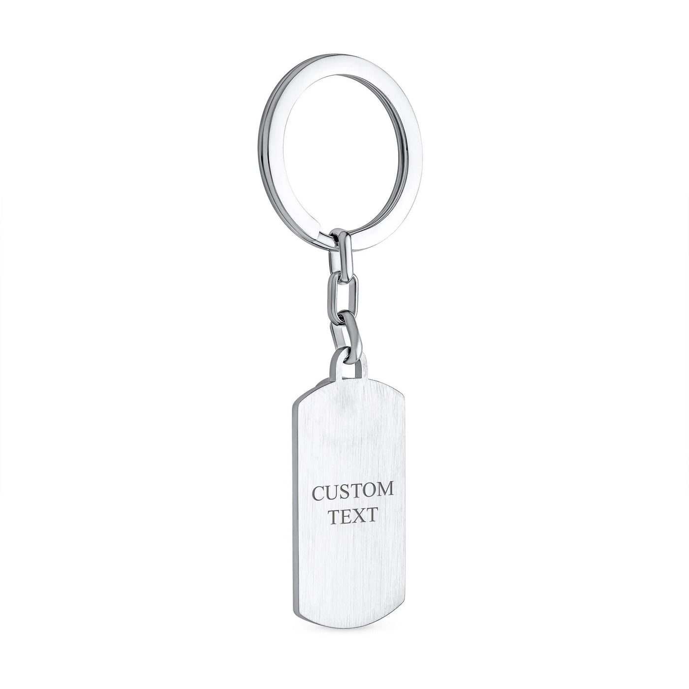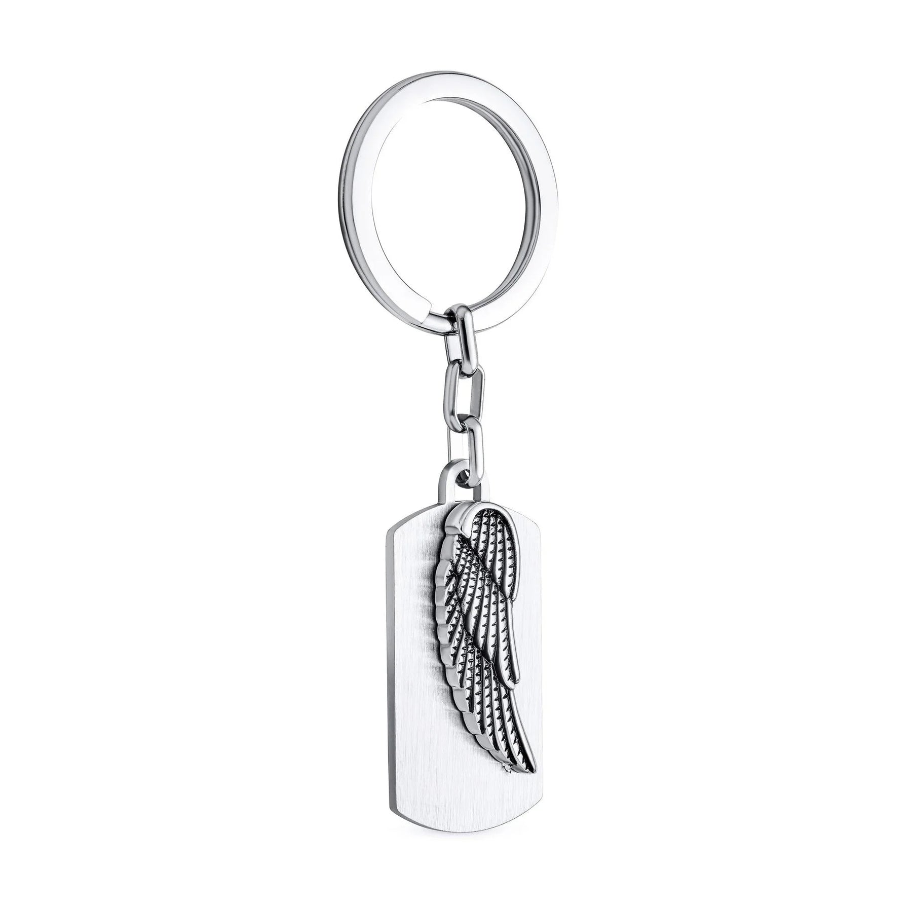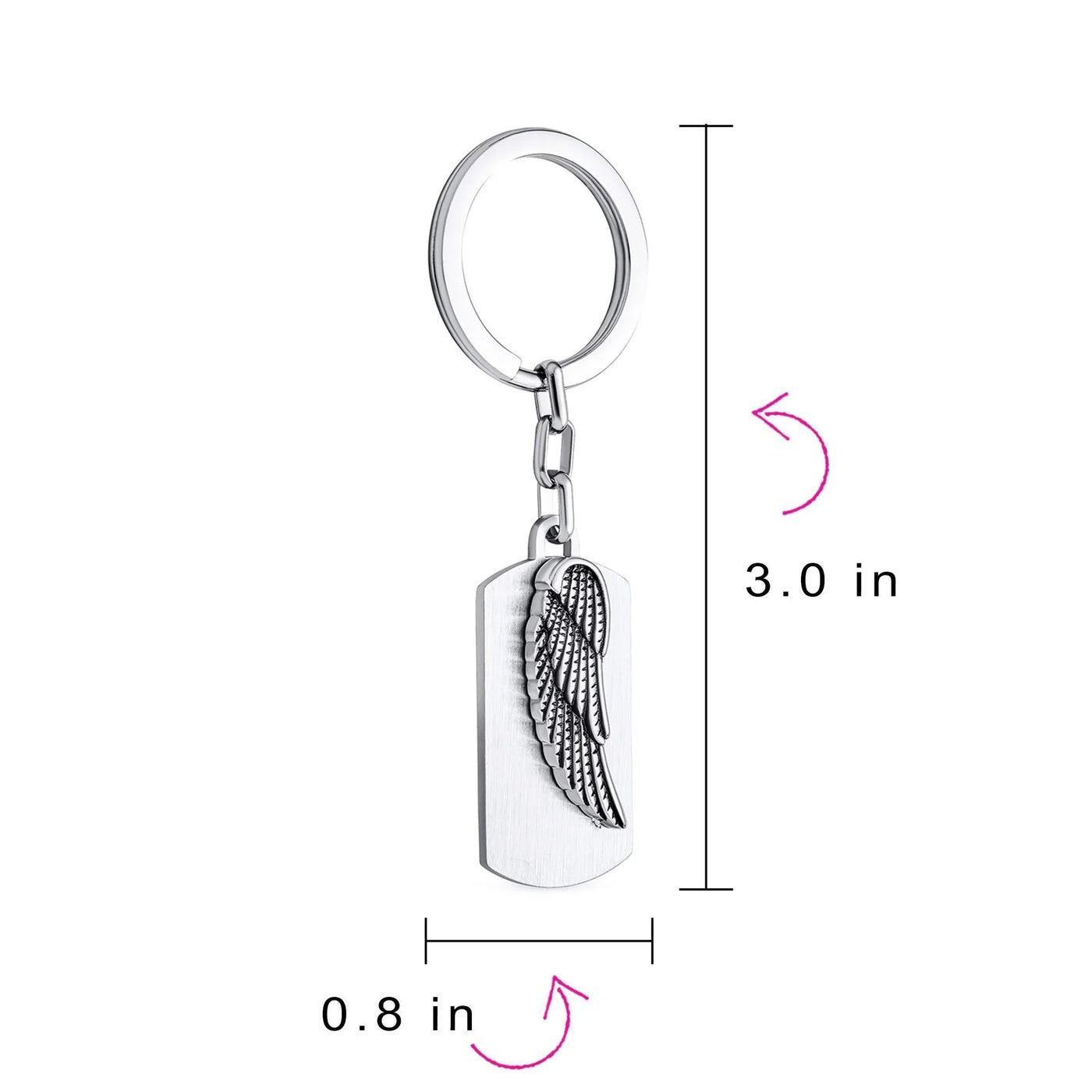- This chic, classy dog tag keychain is a perfect key organizer, crafted from solid stainless steel and polished for high shine. The stunning angel wing design symbolizes love, protection, and guidance. Ideal as a gift, it is also engravable for your loved one.