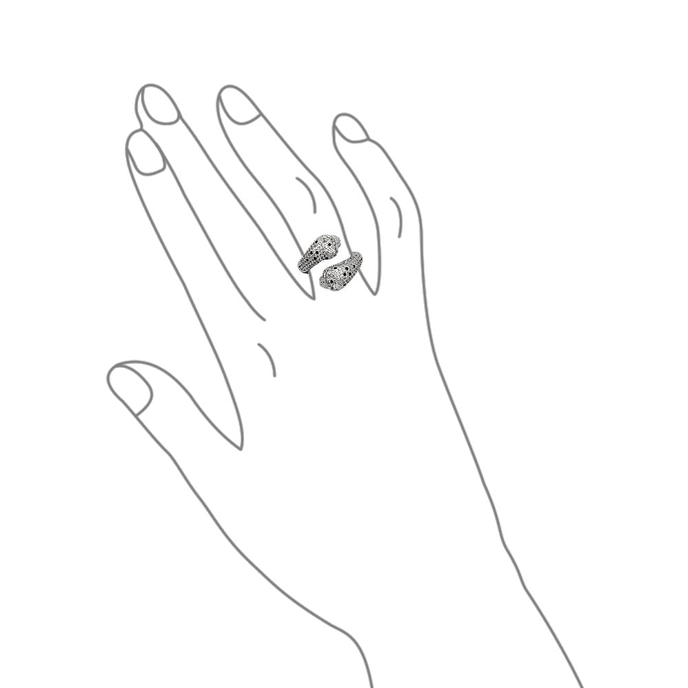 - Featuring simulated ruby, onyx, and clear CZ stones, this spotted cat ring adds a fierce touch to your wardrobe. Fashion rings for women make bold statement cocktail rings for any wild wardrobe. Material: Brass, Rhodium Plated, CZ. Measure: 22mm L x 3mm W. Weight: 9.64 grams. Open style ring.