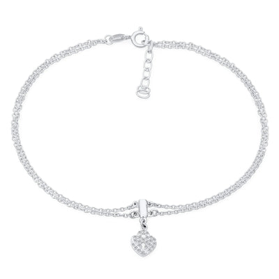 Romantic Double Chain CZ Heart Anklet Ankle Bracelet Sterling Silver - Bling Jewelry