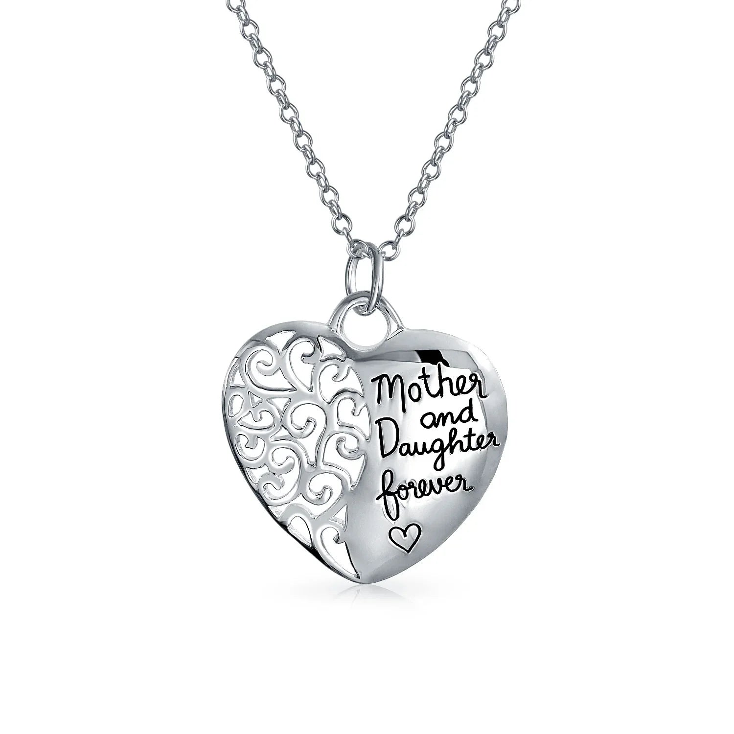 - Express your love for your mother with this sentimental heart-shaped necklace. Featuring a half filigree design and a "Mother and Daughter forever" message, this heartfelt pendant is a special gift that she will cherish forever. Perfect for showing your mother how much she means to you, or as a gift for the most beloved wife to celebrate motherhood.