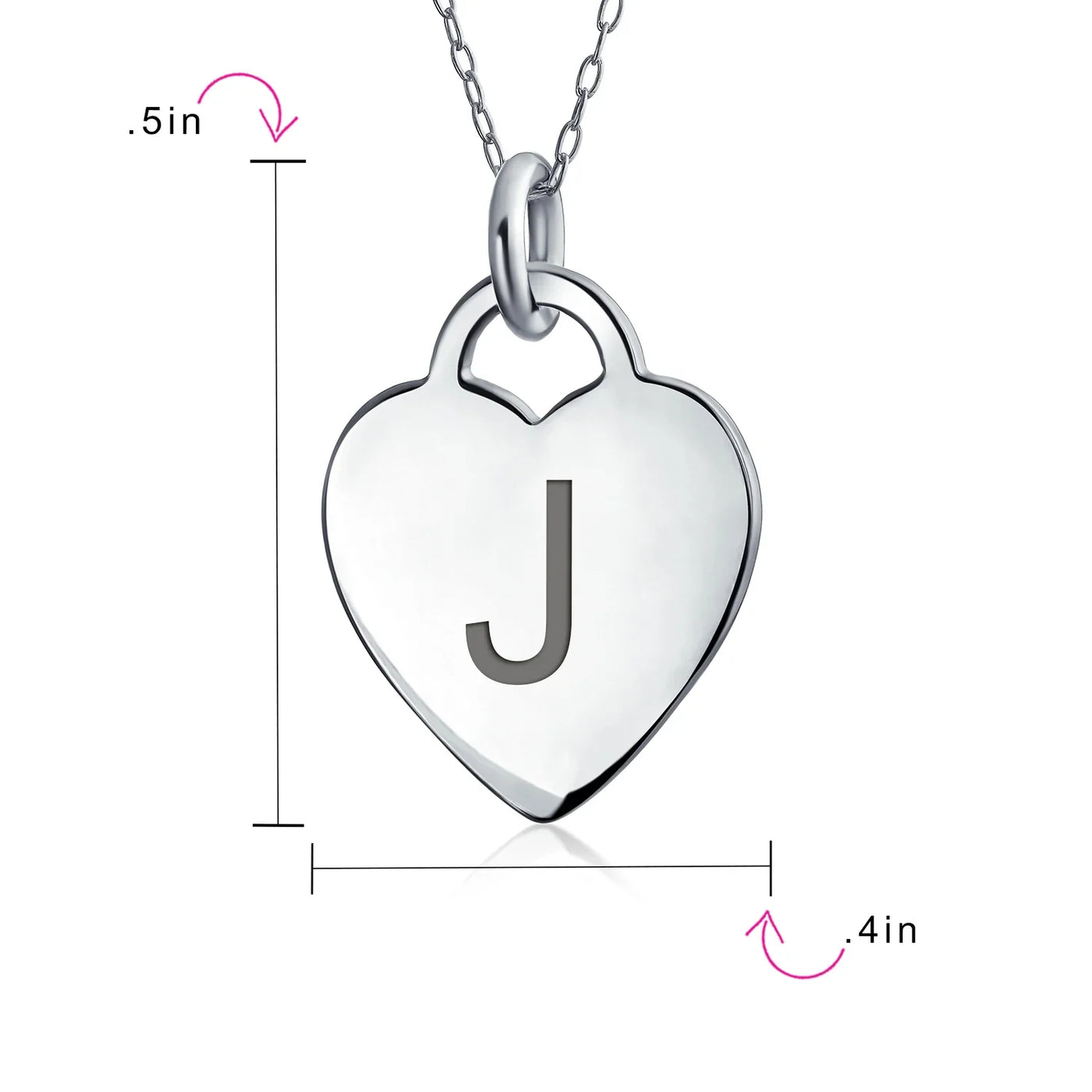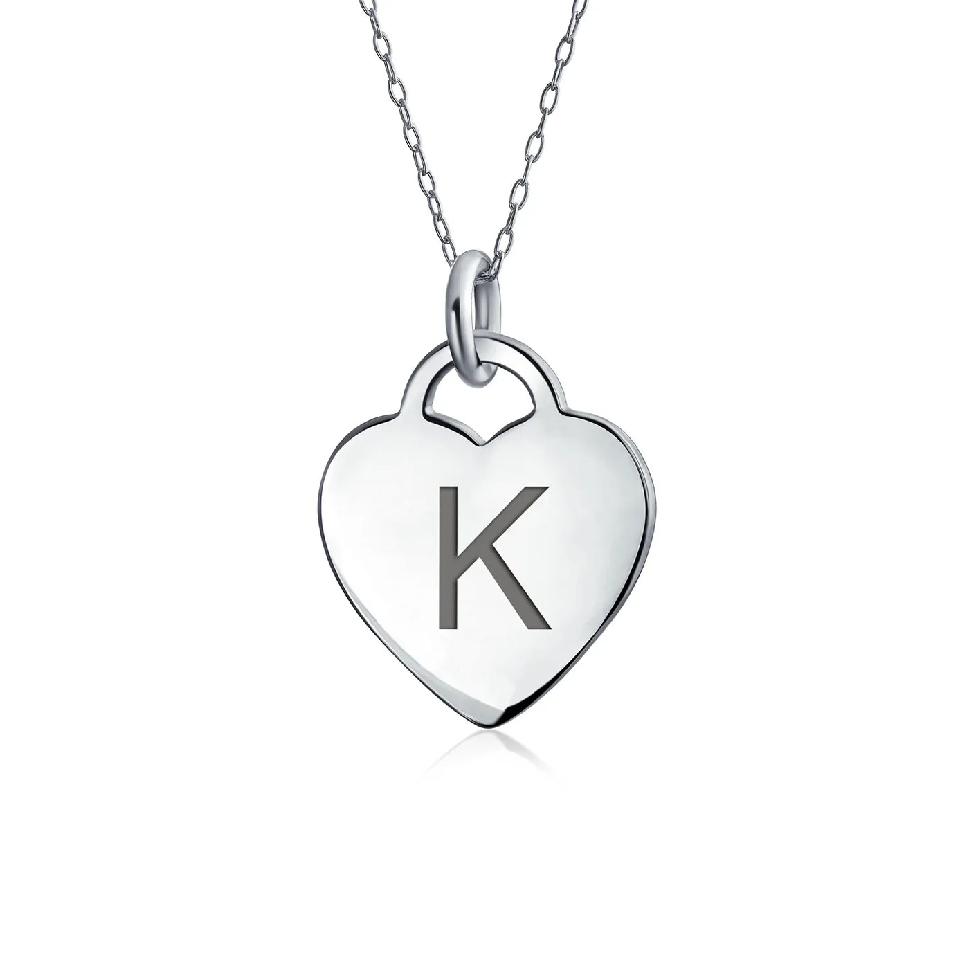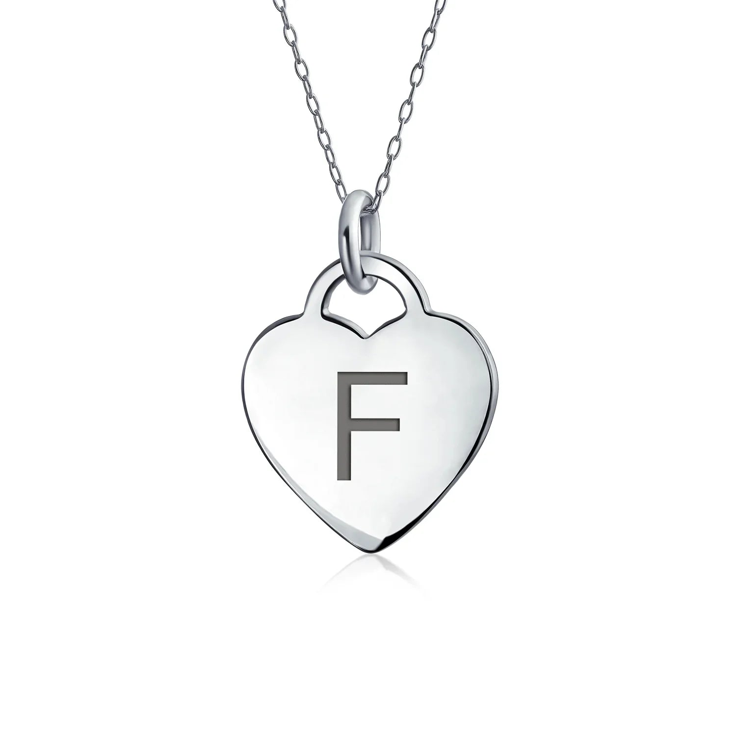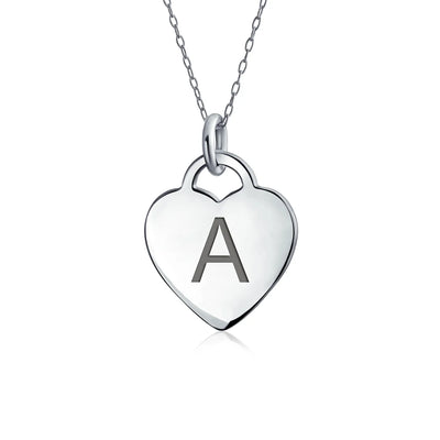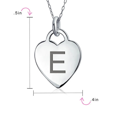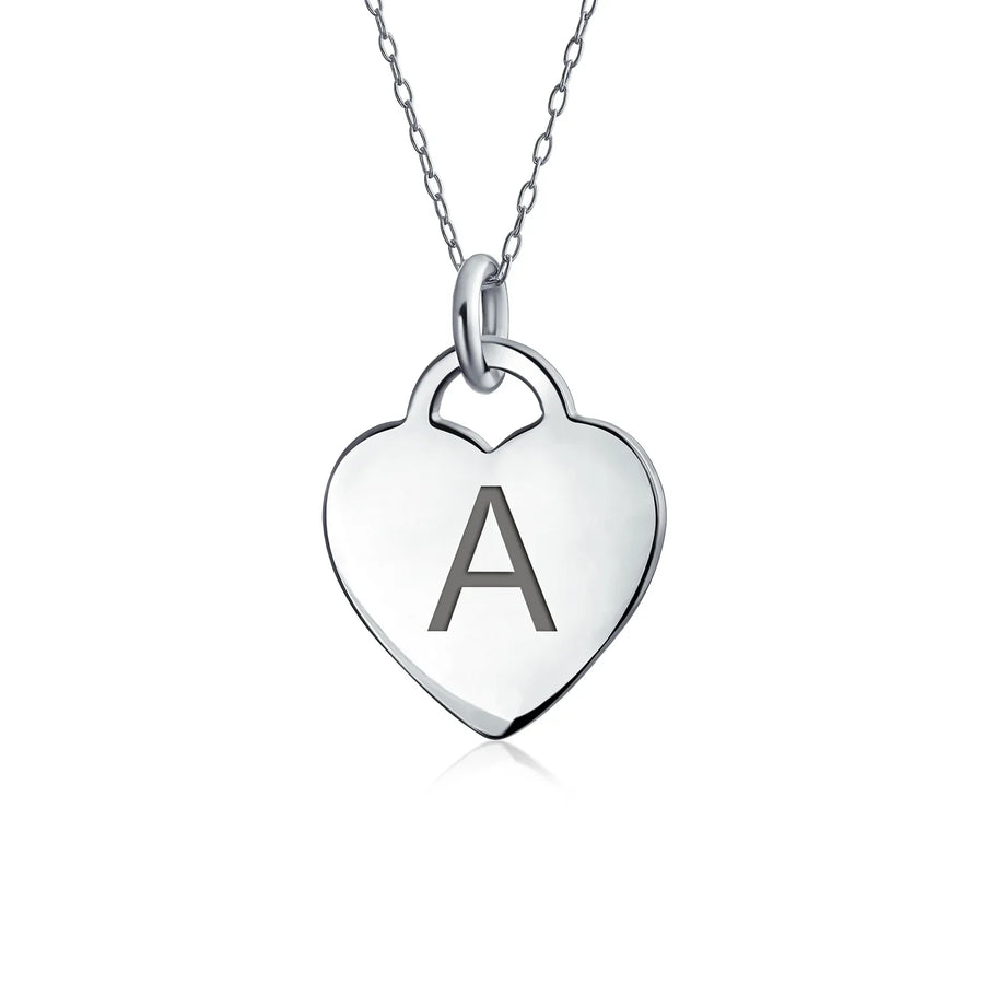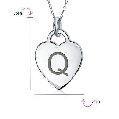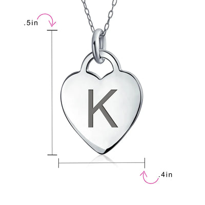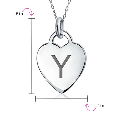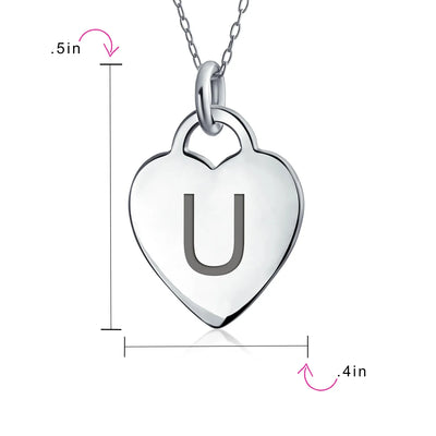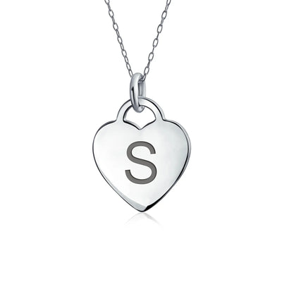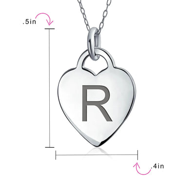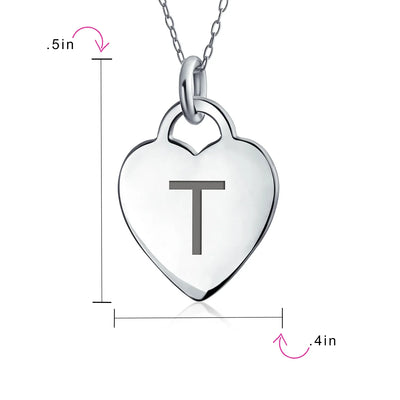 - PERSONALIZE - Customize your jewelry box with this trendy initial necklace. On an 18in chain, this 0.3in flat heart has a stamped letter in its sparkling sterling silver. This is a great fashion gift and a beautiful alphabet script addition to your jewelry box.