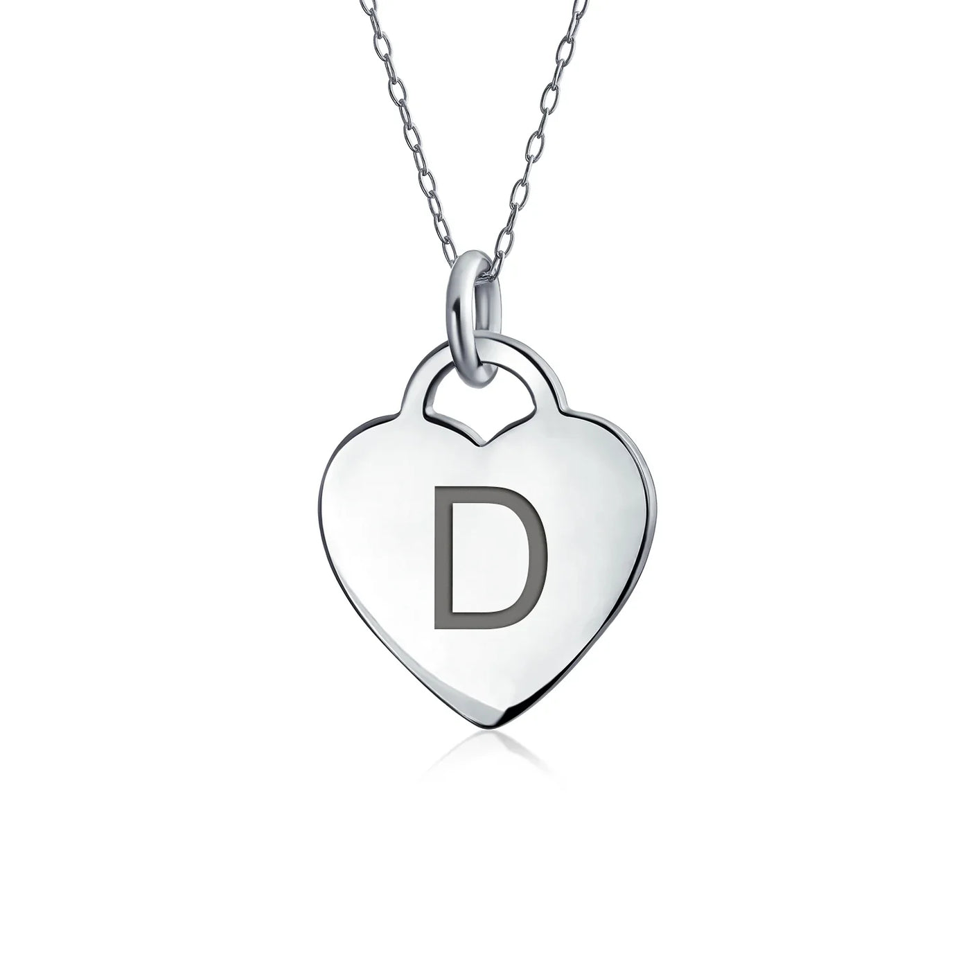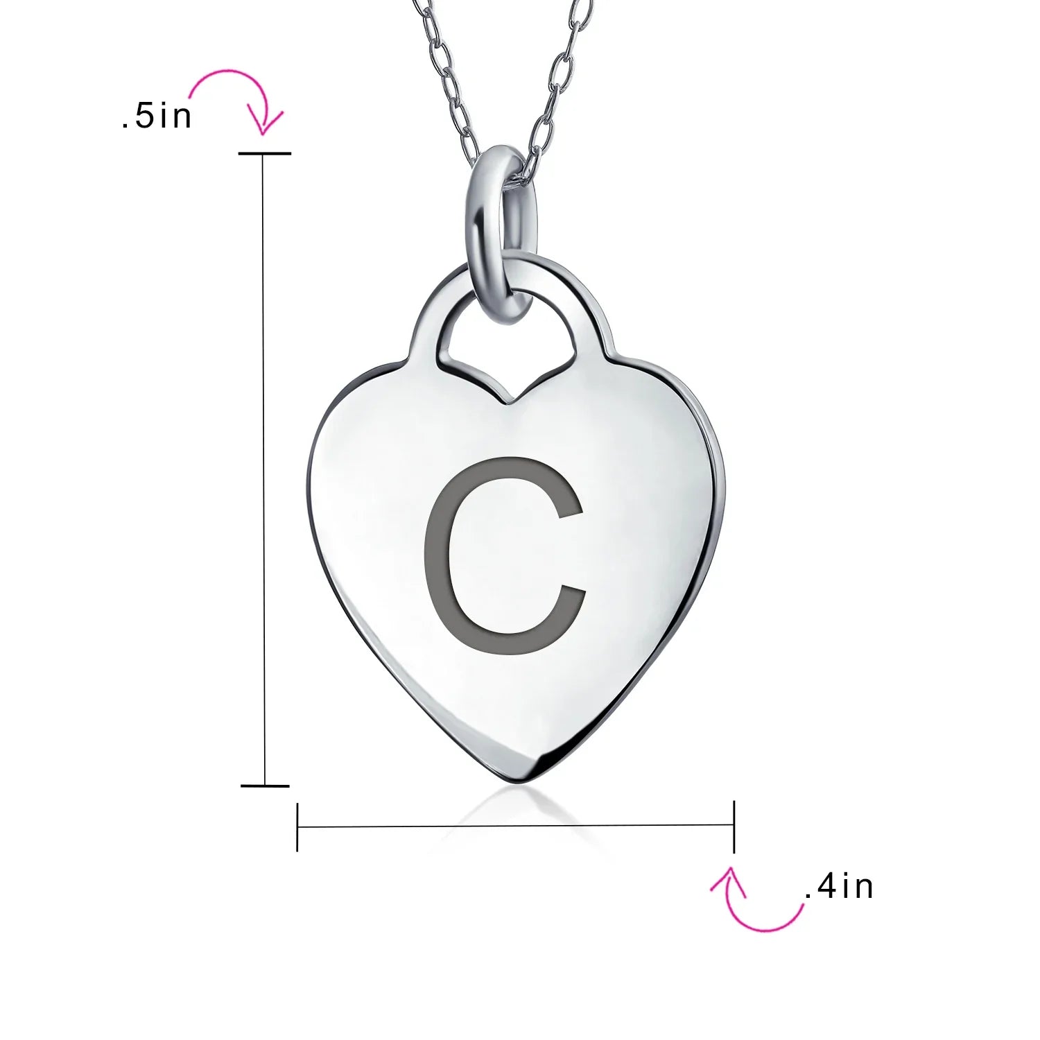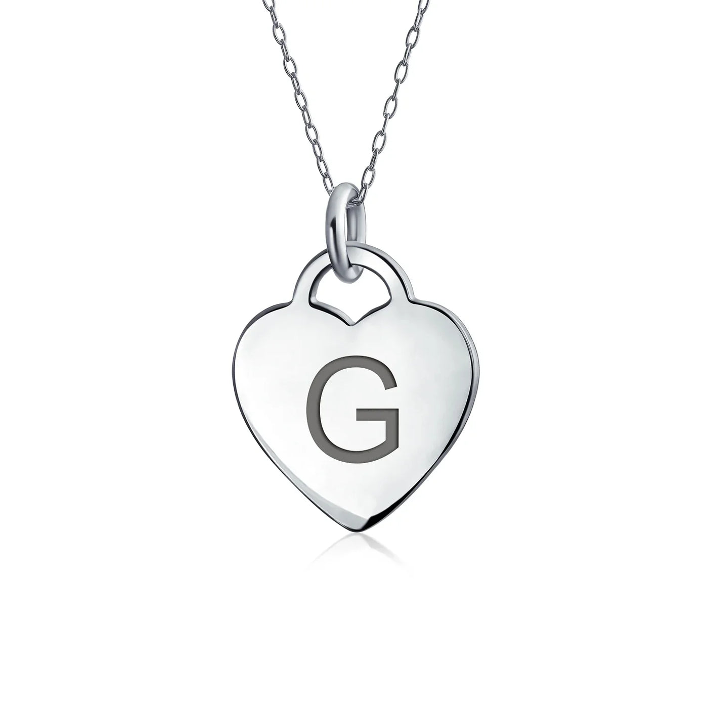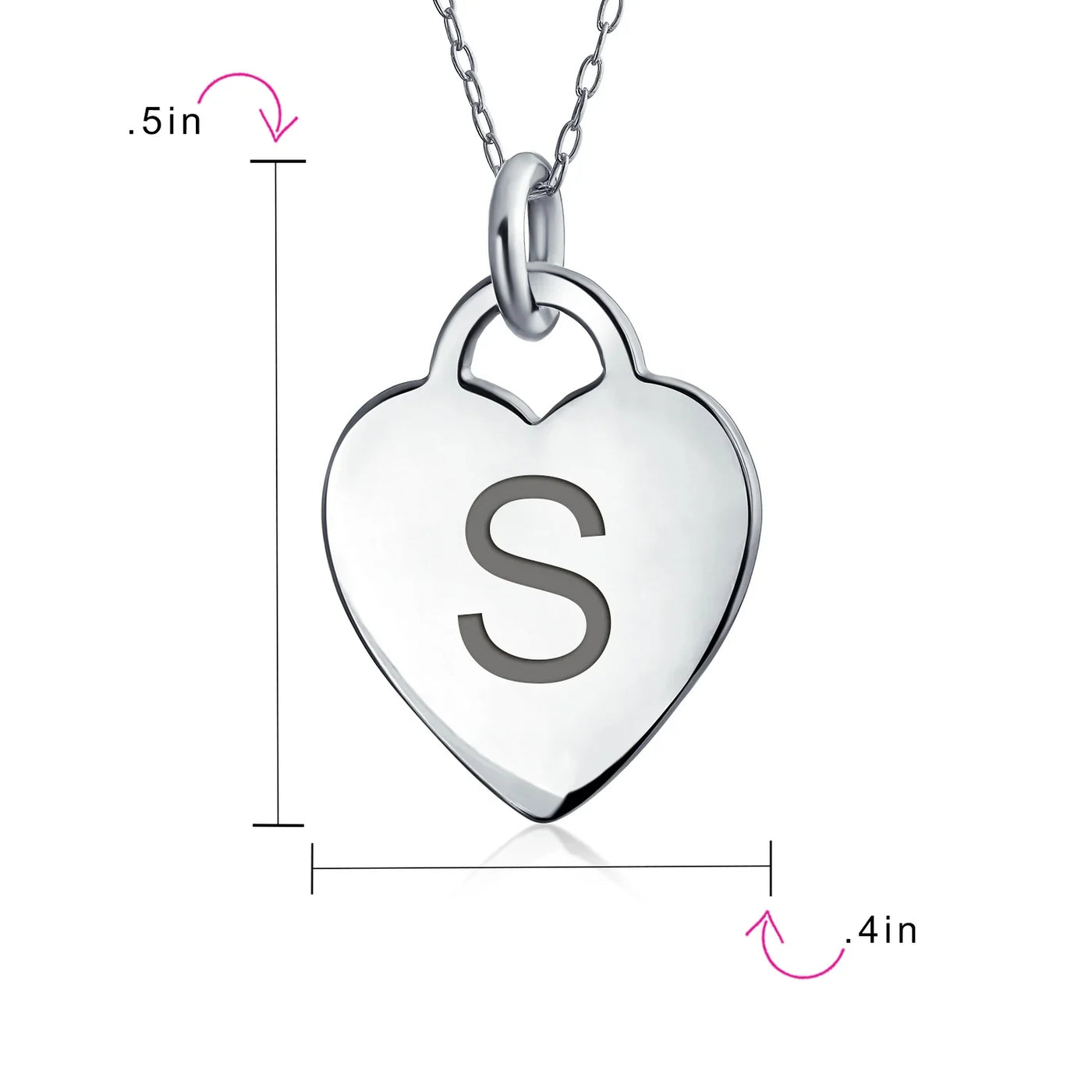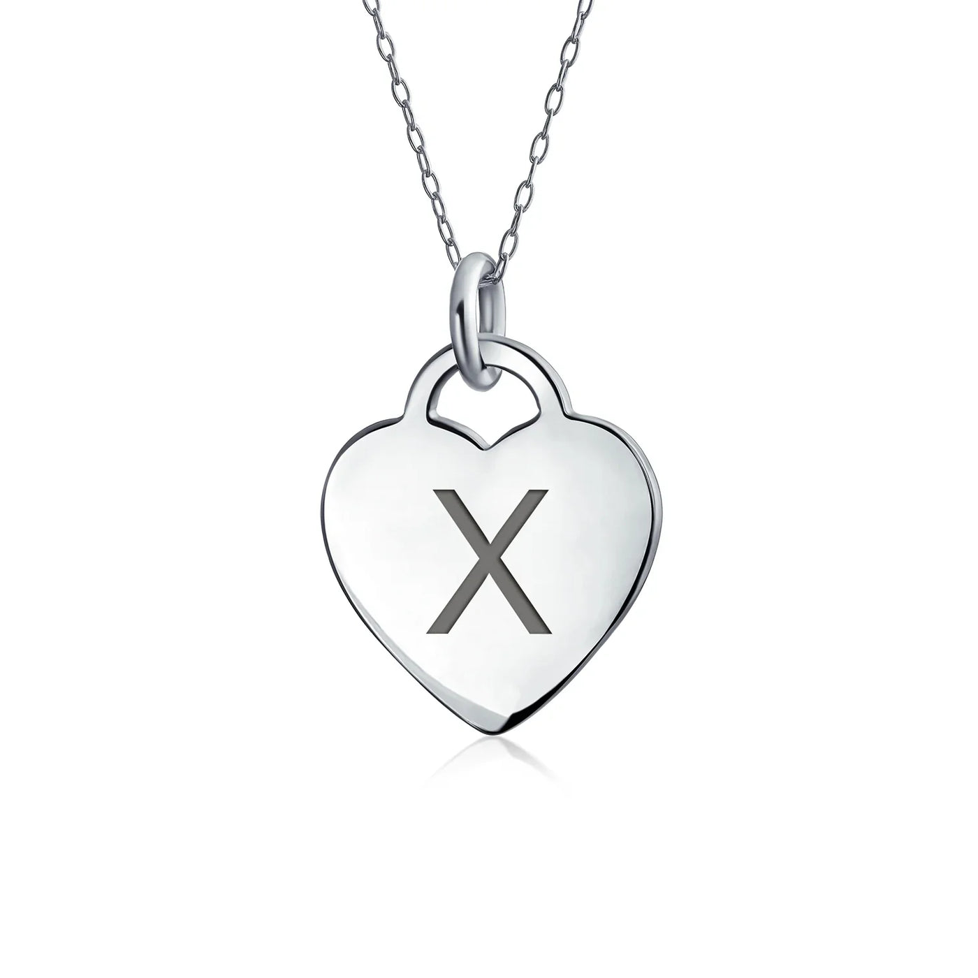 - PERSONALIZE - Customize your jewelry box with this trendy initial necklace. On an 18in chain, this 0.3in flat heart has a stamped letter in its sparkling sterling silver. This is a great fashion gift and a beautiful alphabet script addition to your jewelry box.