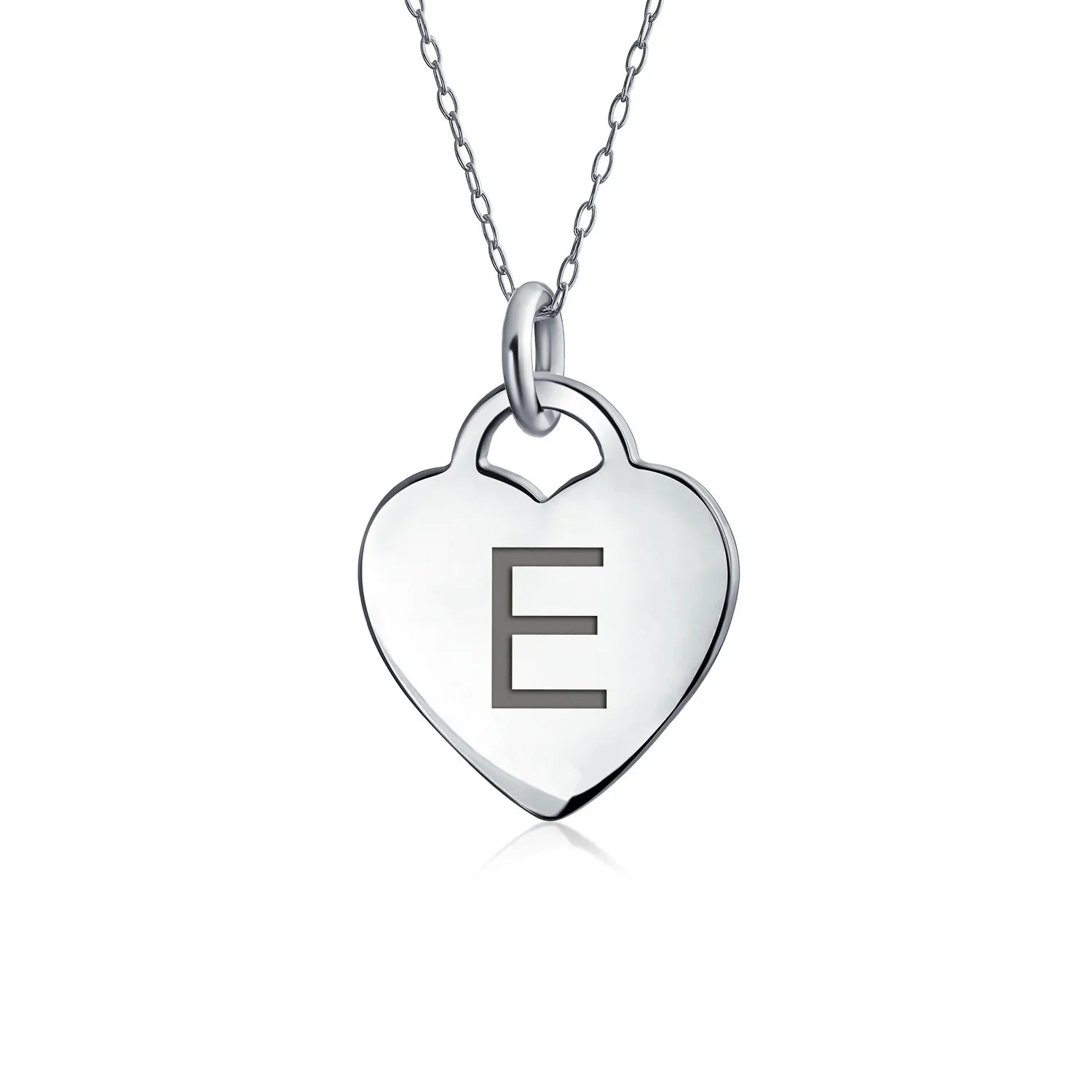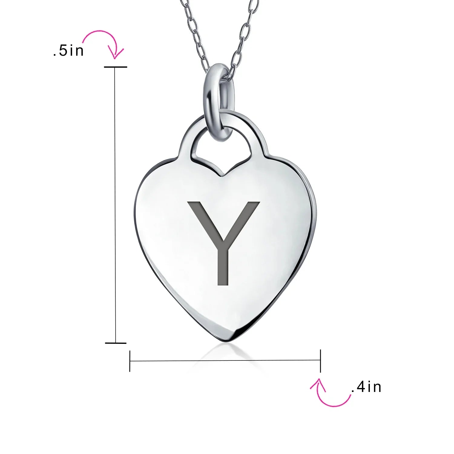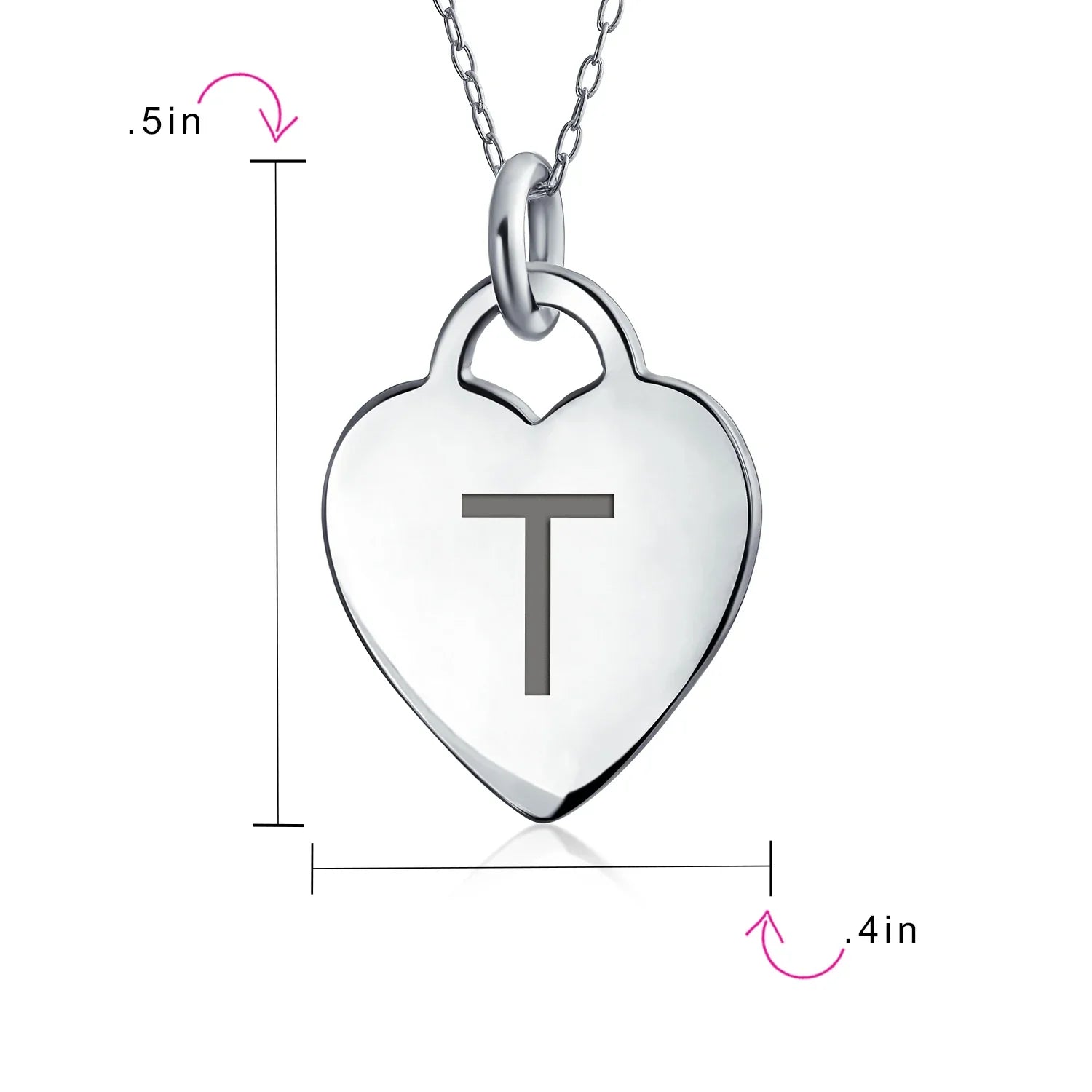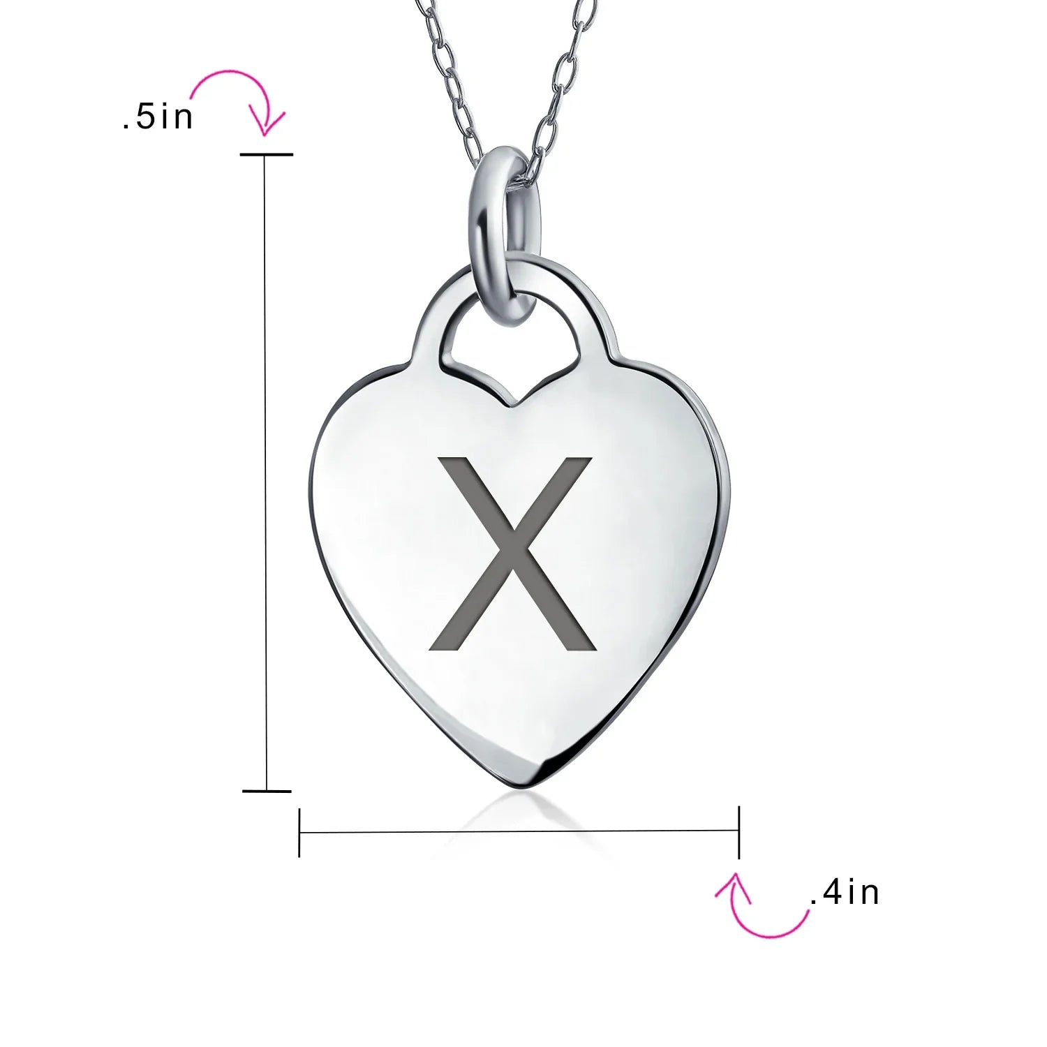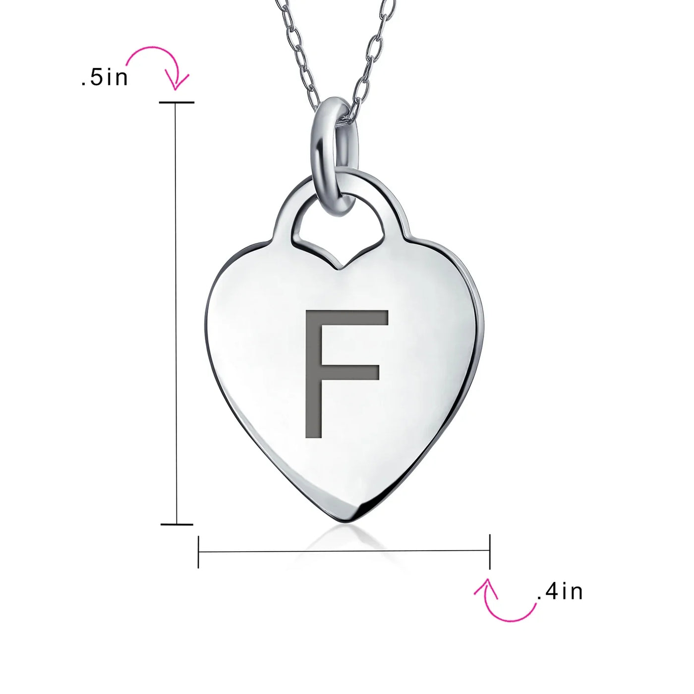 - PERSONALIZE - Customize your jewelry box with this trendy initial necklace. On an 18in chain, this 0.3in flat heart has a stamped letter in its sparkling sterling silver. This is a great fashion gift and a beautiful alphabet script addition to your jewelry box.