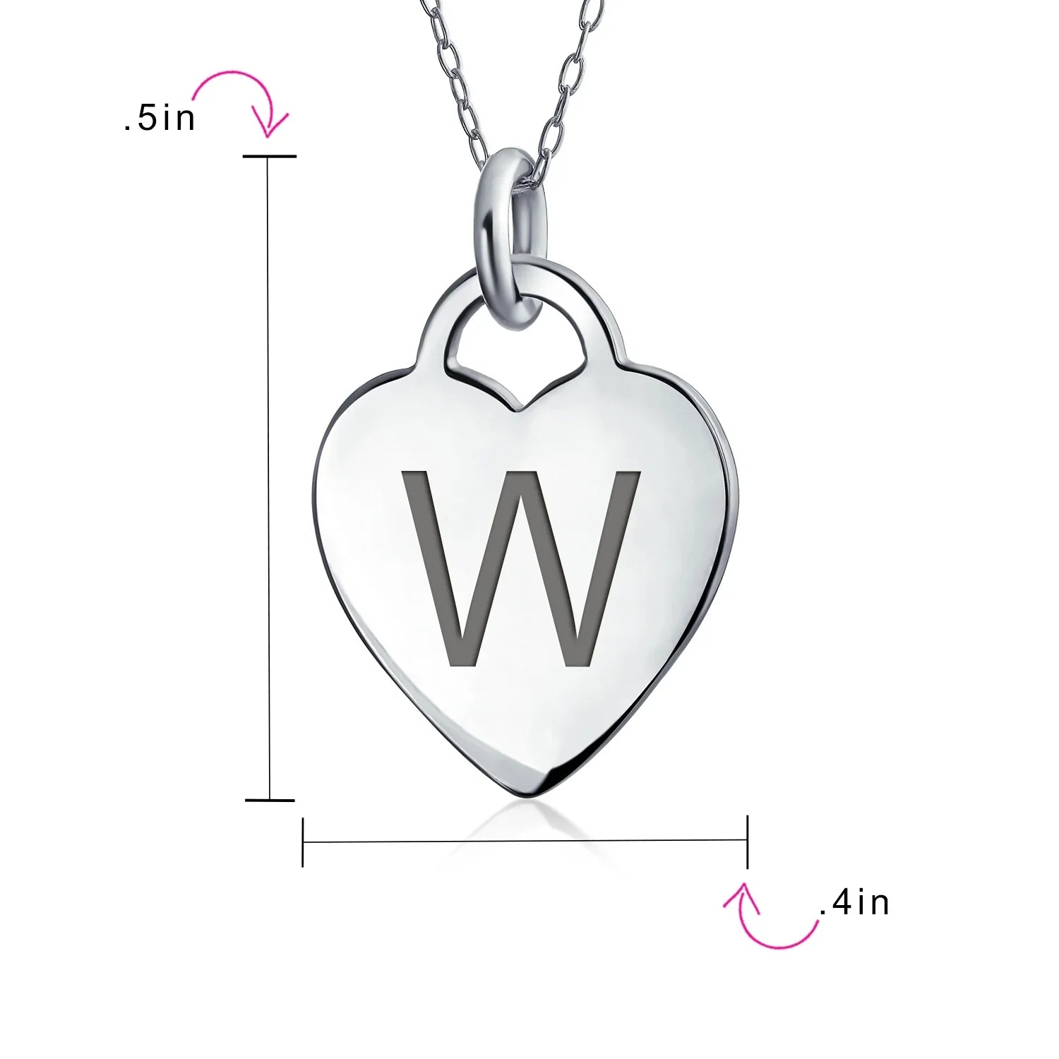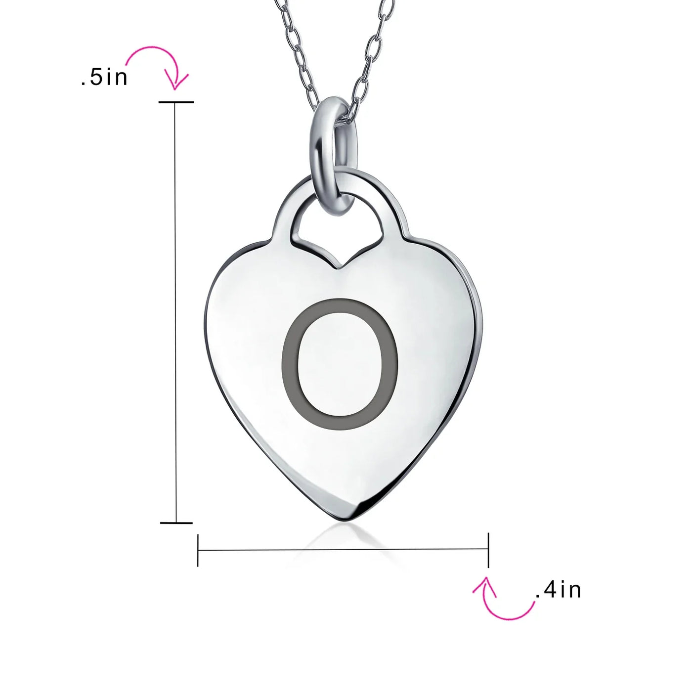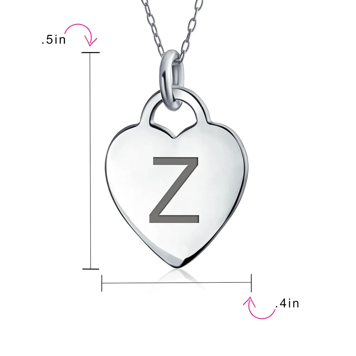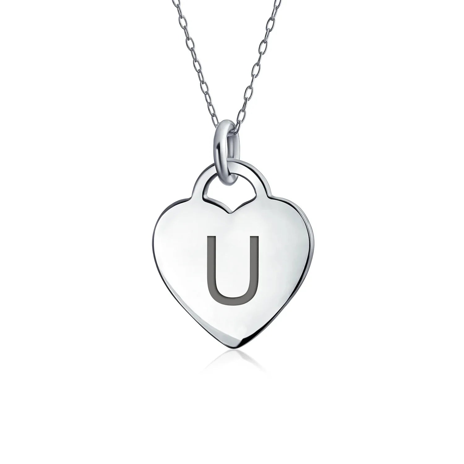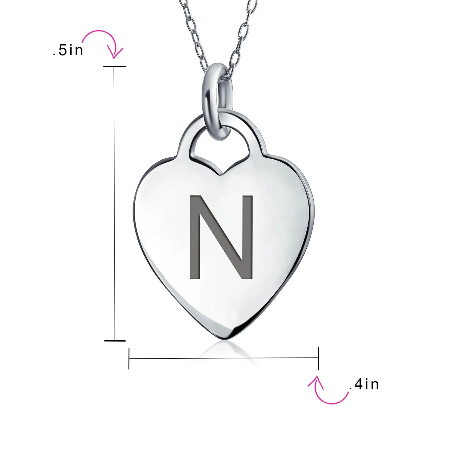 - PERSONALIZE - Customize your jewelry box with this trendy initial necklace. On an 18in chain, this 0.3in flat heart has a stamped letter in its sparkling sterling silver. This is a great fashion gift and a beautiful alphabet script addition to your jewelry box.