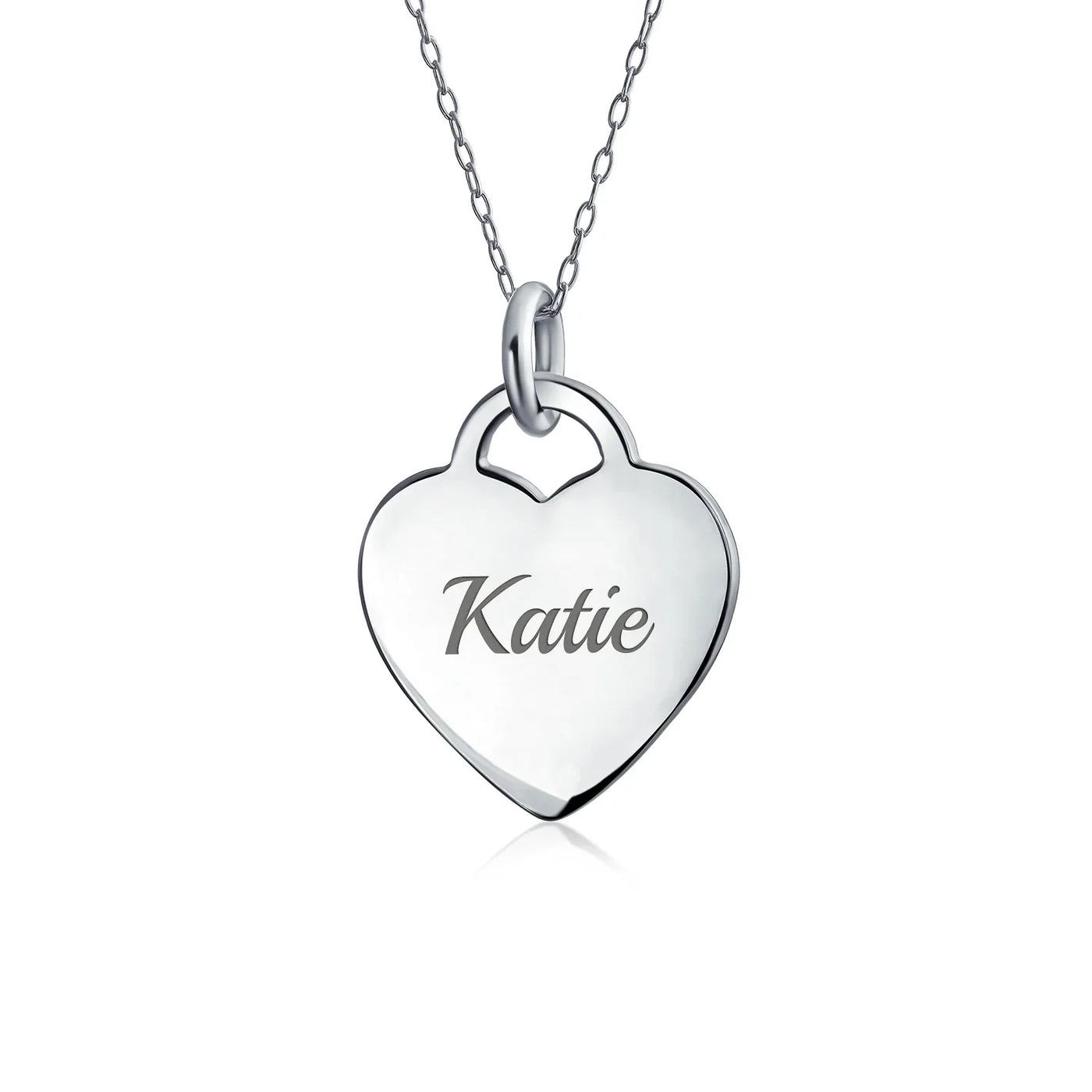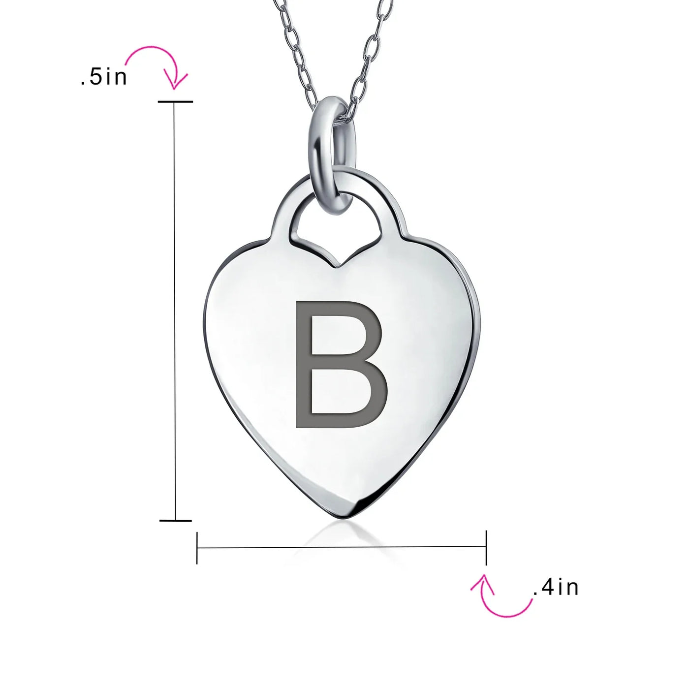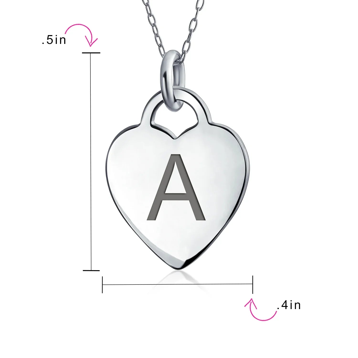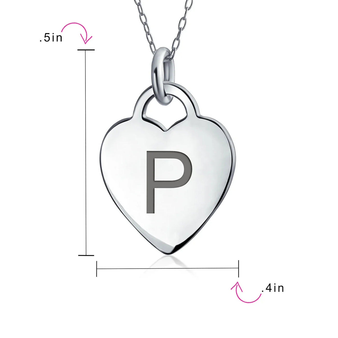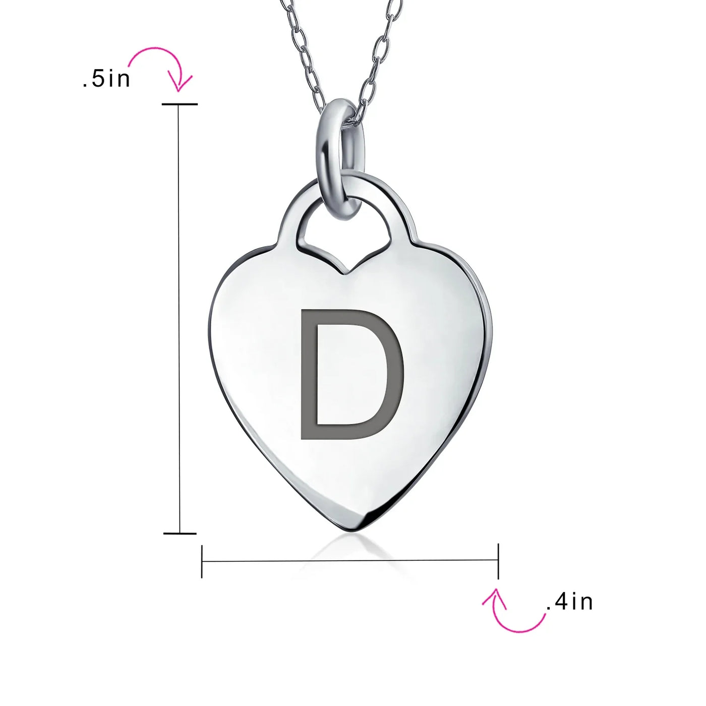 - PERSONALIZE - Customize your jewelry box with this trendy initial necklace. On an 18in chain, this 0.3in flat heart has a stamped letter in its sparkling sterling silver. This is a great fashion gift and a beautiful alphabet script addition to your jewelry box.