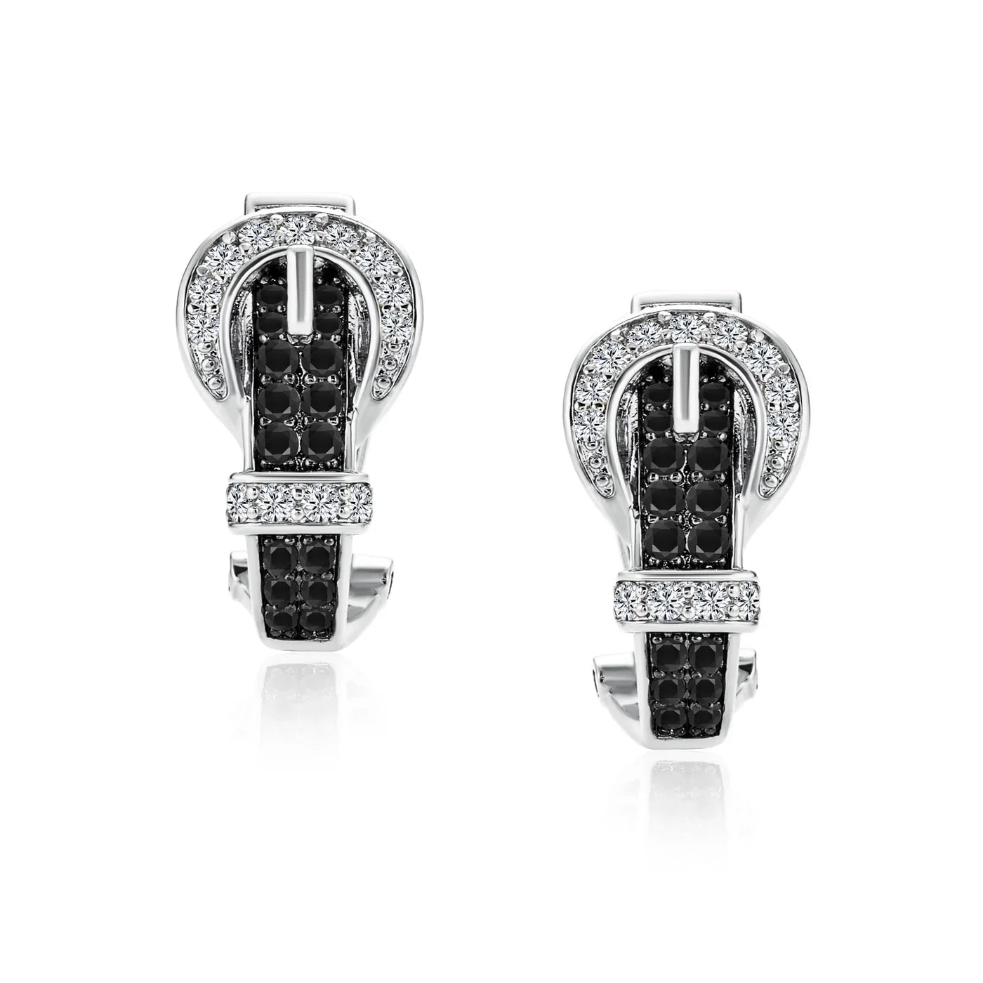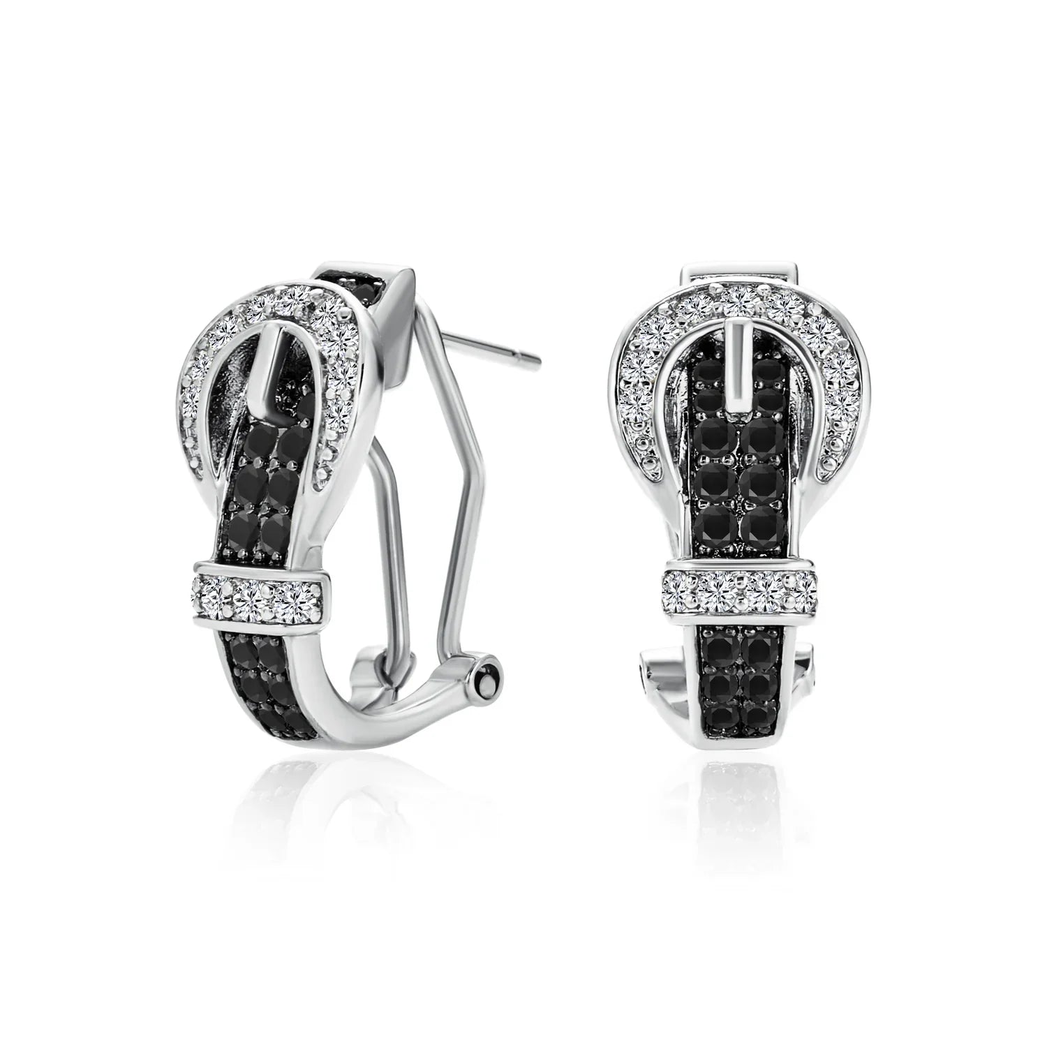 - Material: Black Rhodium Plating Brass, Cubic Zirconia, Measure: 1.25 Diameter For Pierced Ears, Hinge With Notched Post