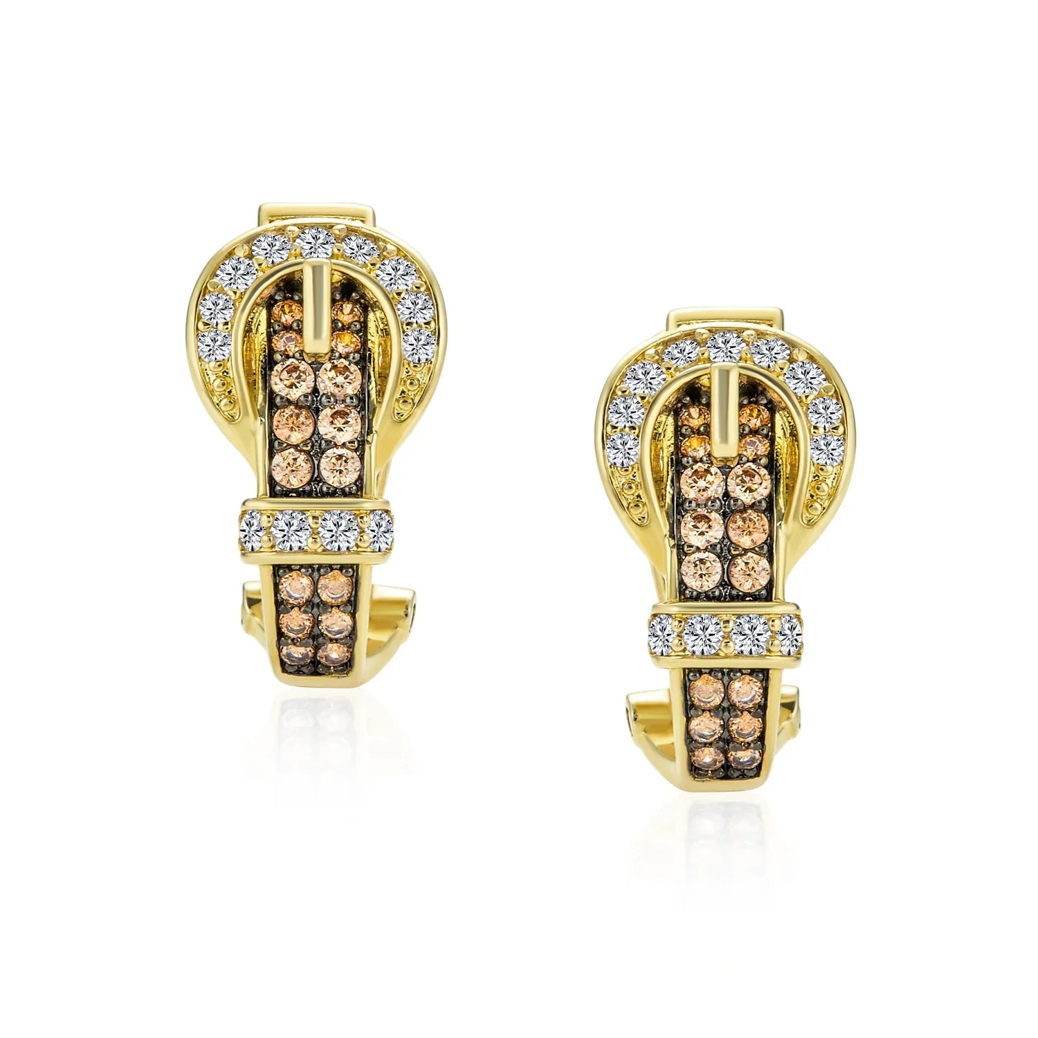 - Take your night out look to new levels of red carpet elegance with these ravishing, brass hoops. Brilliantly sparkling from every angle with a beguiling inside out design, and accented by simulated onyx czs. Makes divine July birthday option.