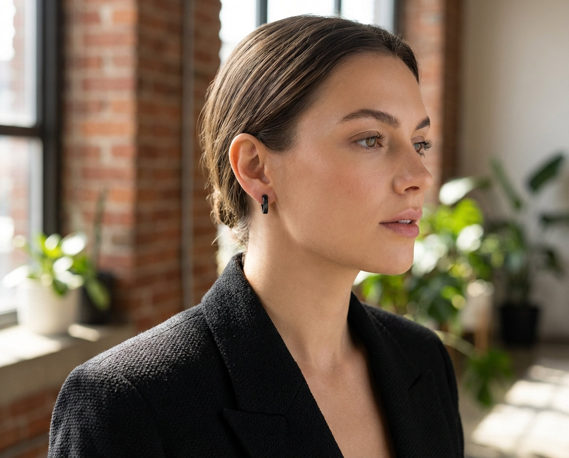 - Shine in style with Micro Pave Simulated Black Onyx CZ Huggie Hoops. Crafted from .925 rhodium plated sterling silver, these men's earrings feature two rows of micro pave black CZ stones. Versatile and perfect for gifting, they are ideal for jewelry lovers with pierced ears. Make your holiday shopping easy with these stunning CZ hoop earrings.