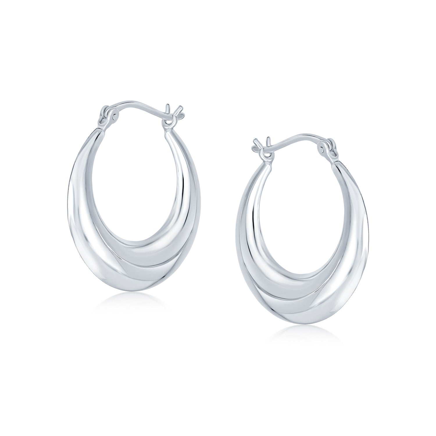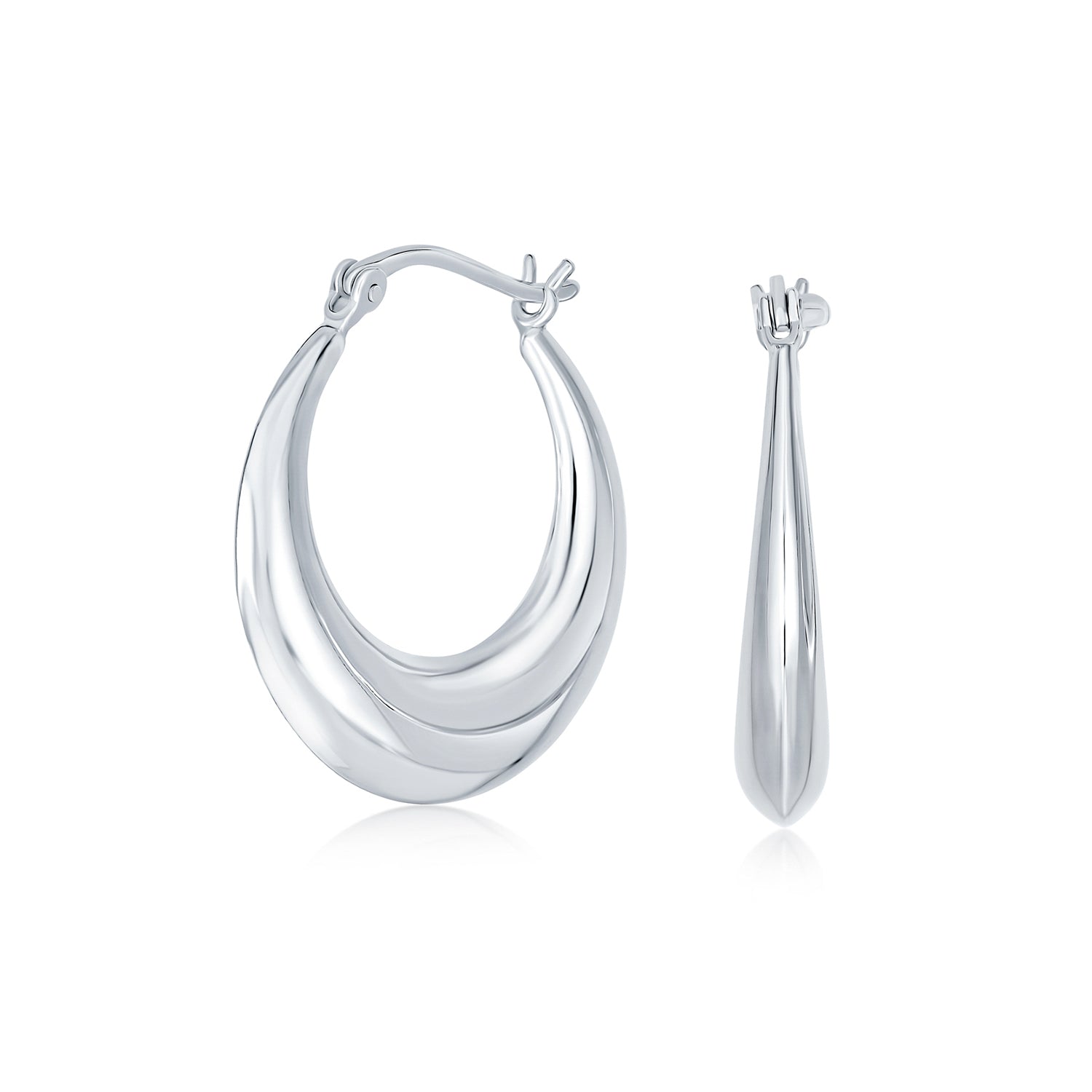 - These timeless, elegant silver hoop earrings are a must-have. Heavy graduated crescent hoops rest comfortably without weighing you down. Versatile sterling silver jewelry, perfect for any occasion from morning coffee to happy hour.