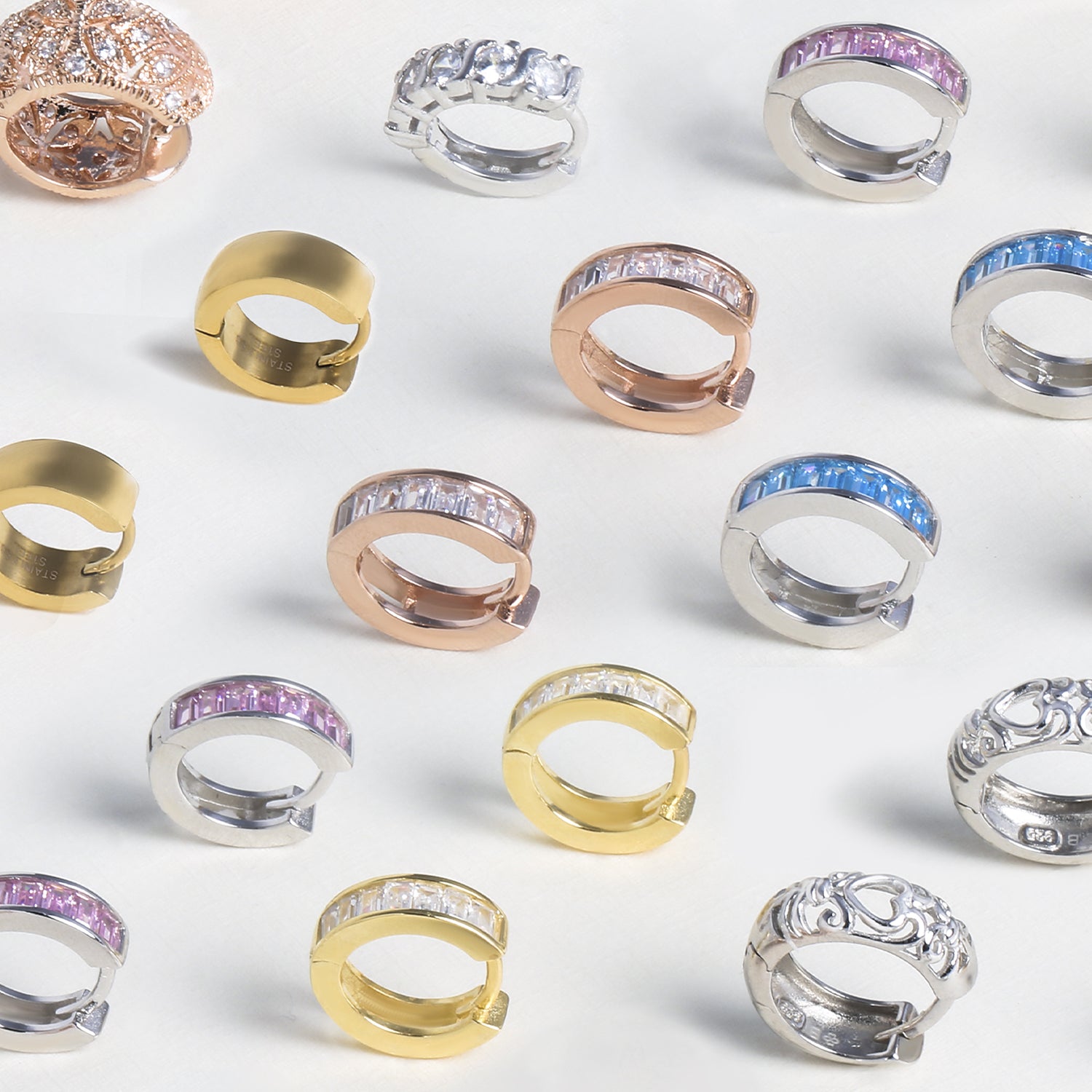 - This pair of Victorian Style Vintage Style flowers cubic zirconia huggie hoop earrings will never go out of style. These Vintage Style hoop earrings feature a snug fit to your ear which accentuates a highly polished look and are plated in rhodium so they never lose their shine. These beautiful huggie earrings hinge seamlessly open and snap securely closed. These flower cz earrings are truly comfortable in a Vintage Style design displaying a stunning look of sophistication and class. Do not miss out on these cz huggie hoops that give you the versatility you desire for day and night.