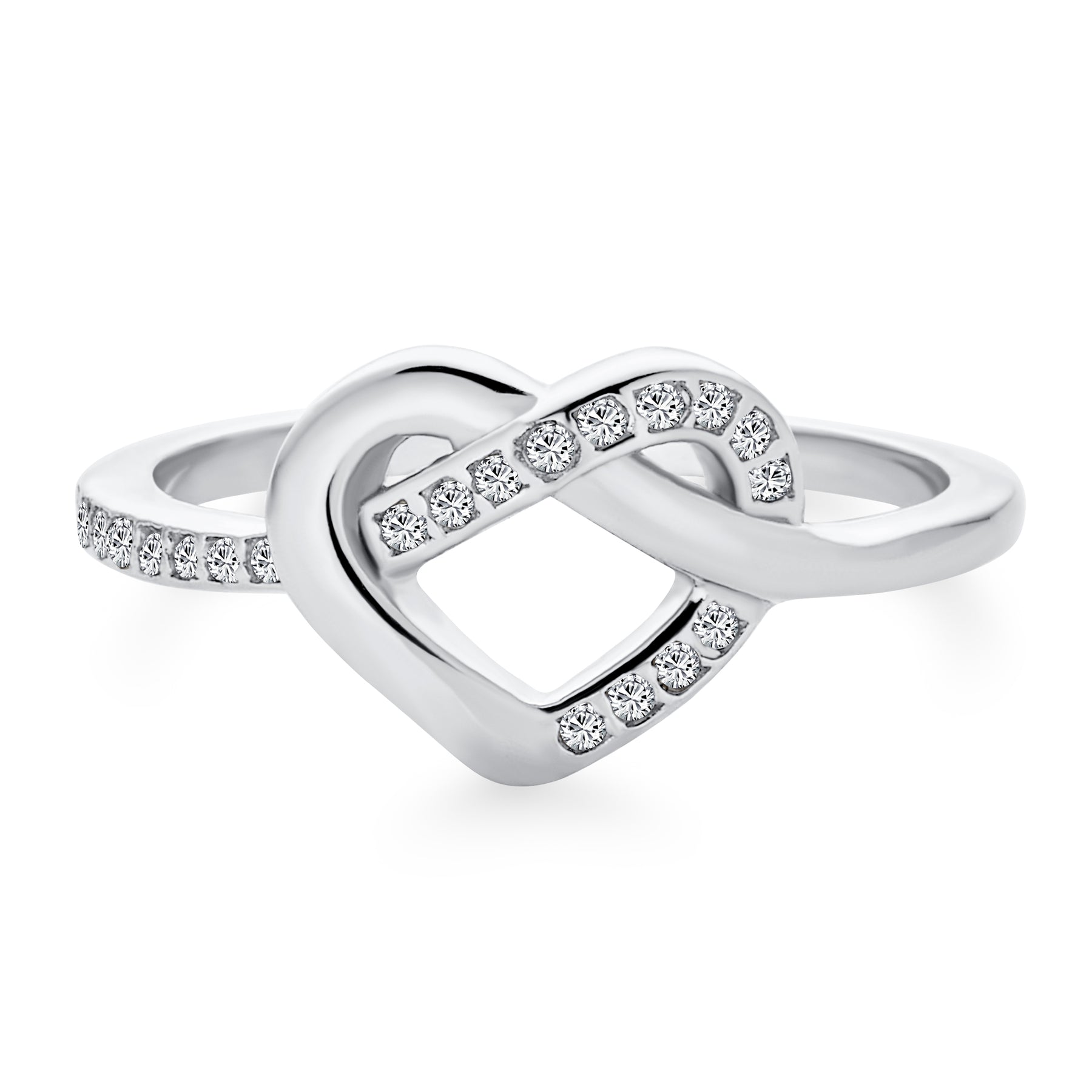 - Celebrate love and friendship with this sterling silver promise ring. Featuring a heart-shaped cubic zirconia and an infinity band design, it symbolizes everlasting connection and sparkle—perfect for meaningful gifts or everyday elegance.