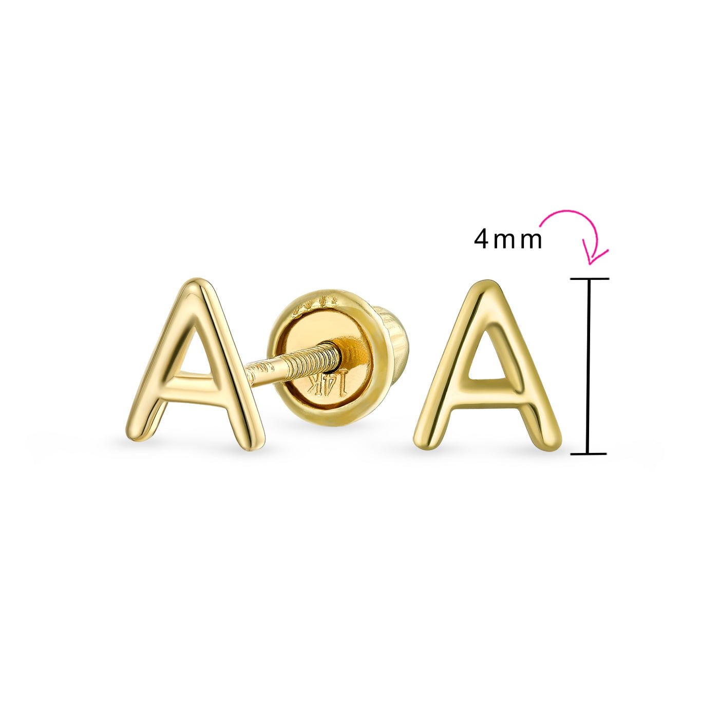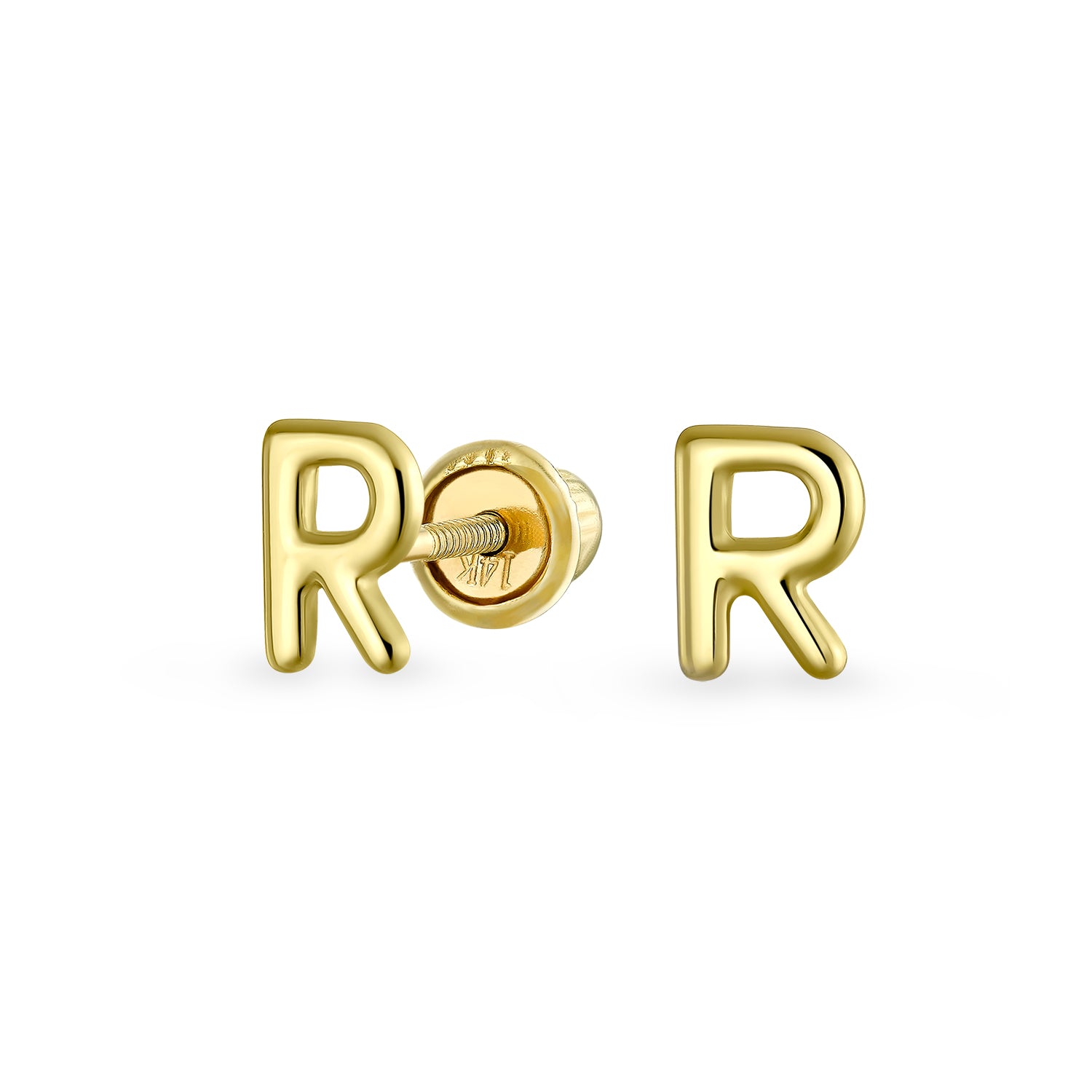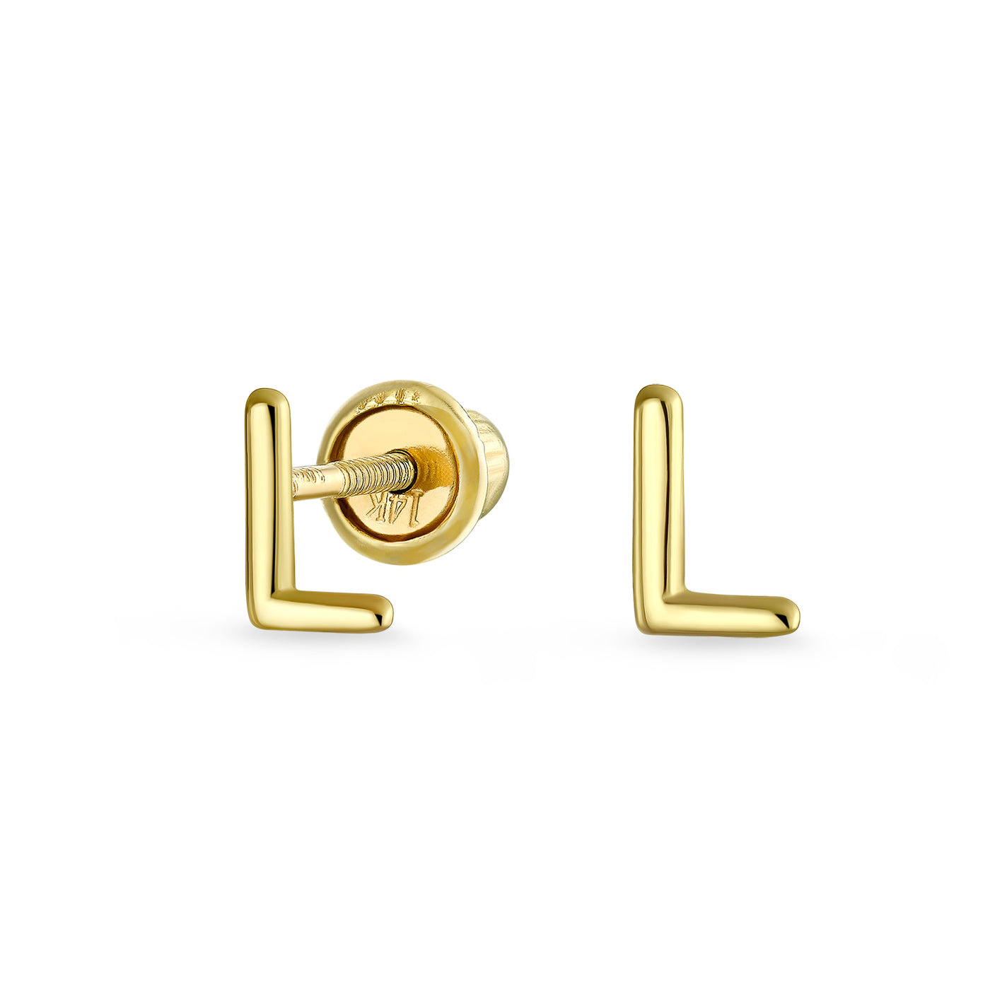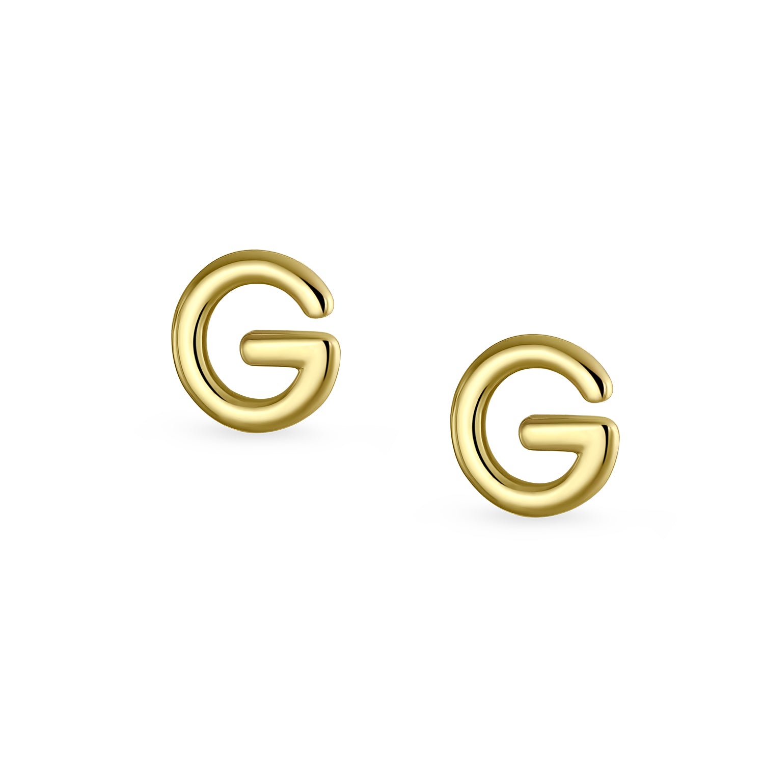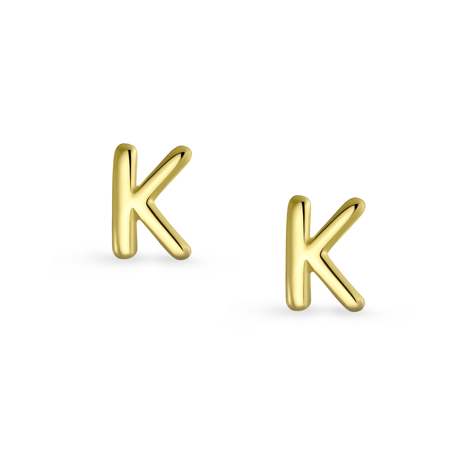 - Stay trendy with our modern letter initial earrings. Adorn your chic lobes with shiny 14K Gold alphabet letters. Personalize your look and celebrate individuality. Get your 14K Gold earrings for women today!