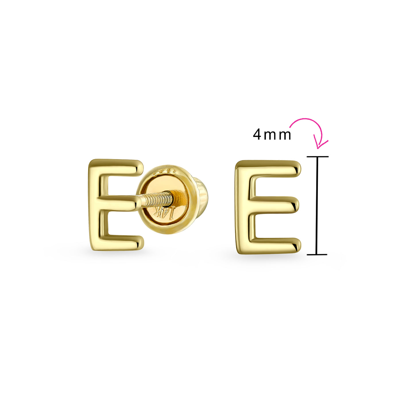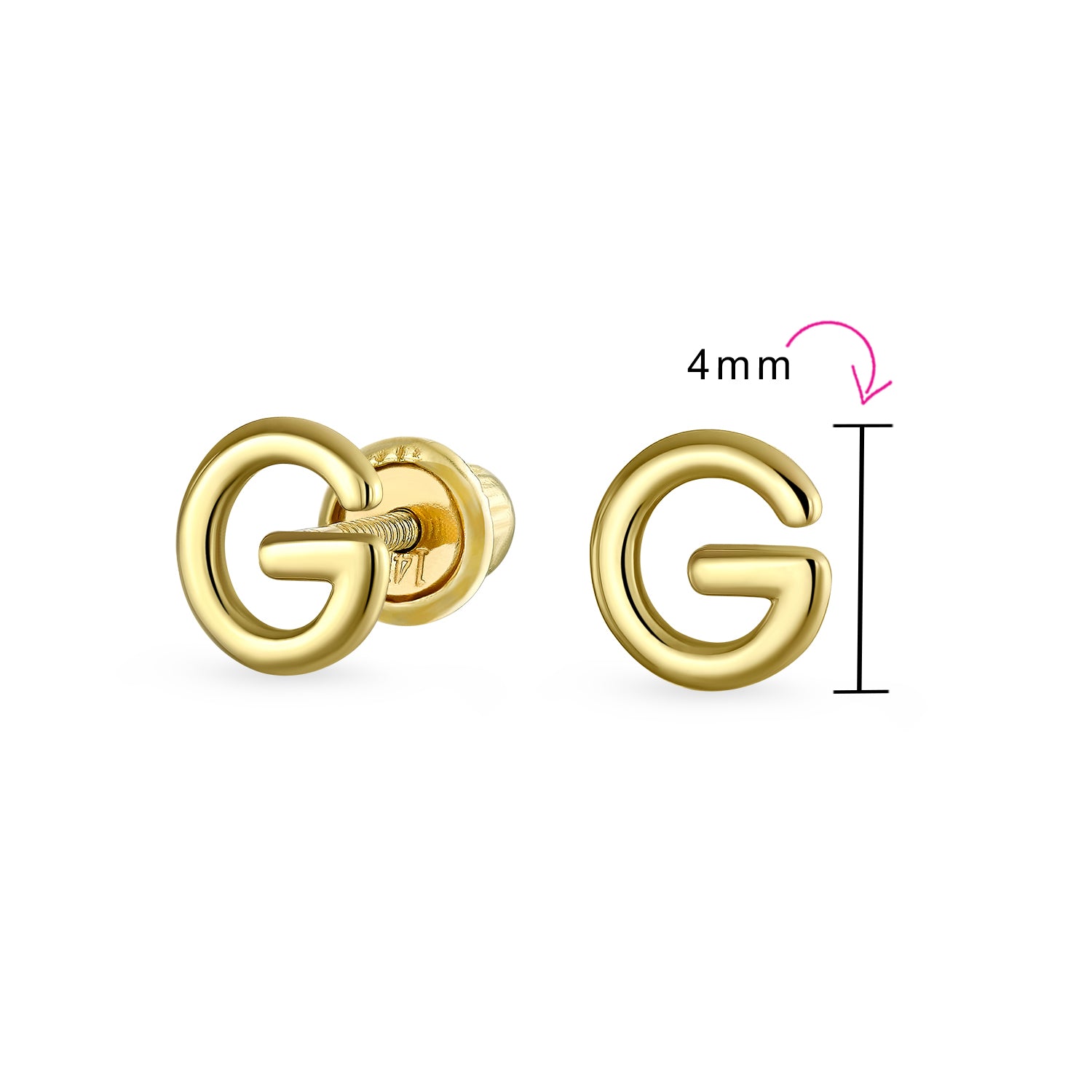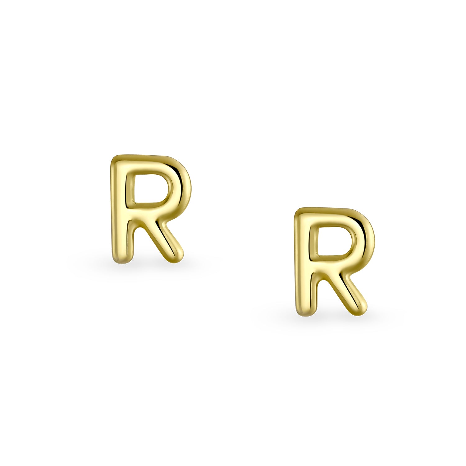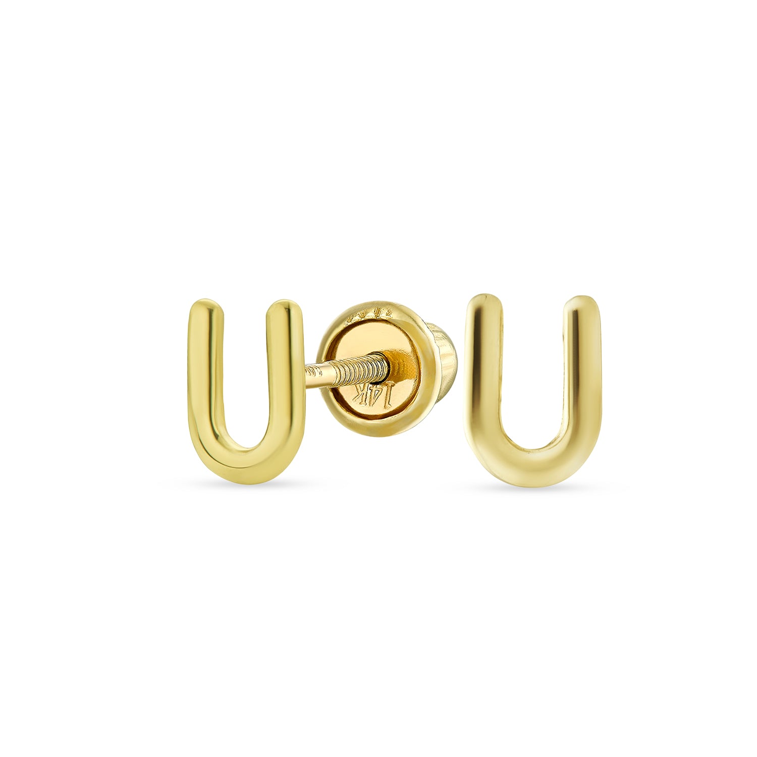 - Stay trendy with our modern letter initial earrings. Adorn your chic lobes with shiny 14K Gold alphabet letters. Personalize your look and celebrate individuality. Get your 14K Gold earrings for women today!