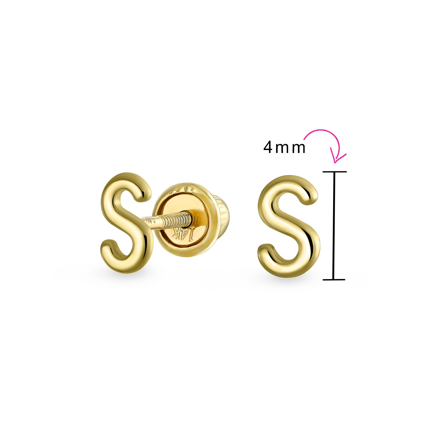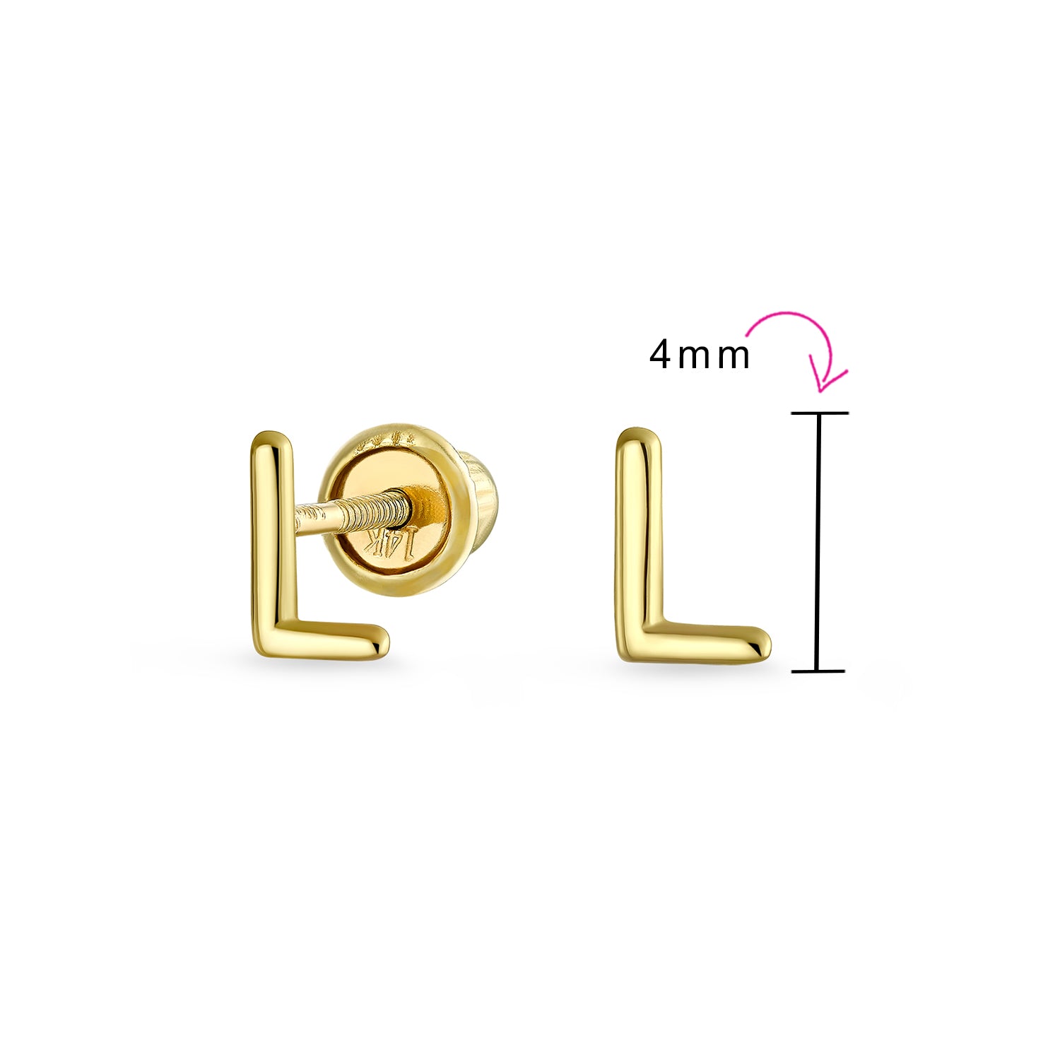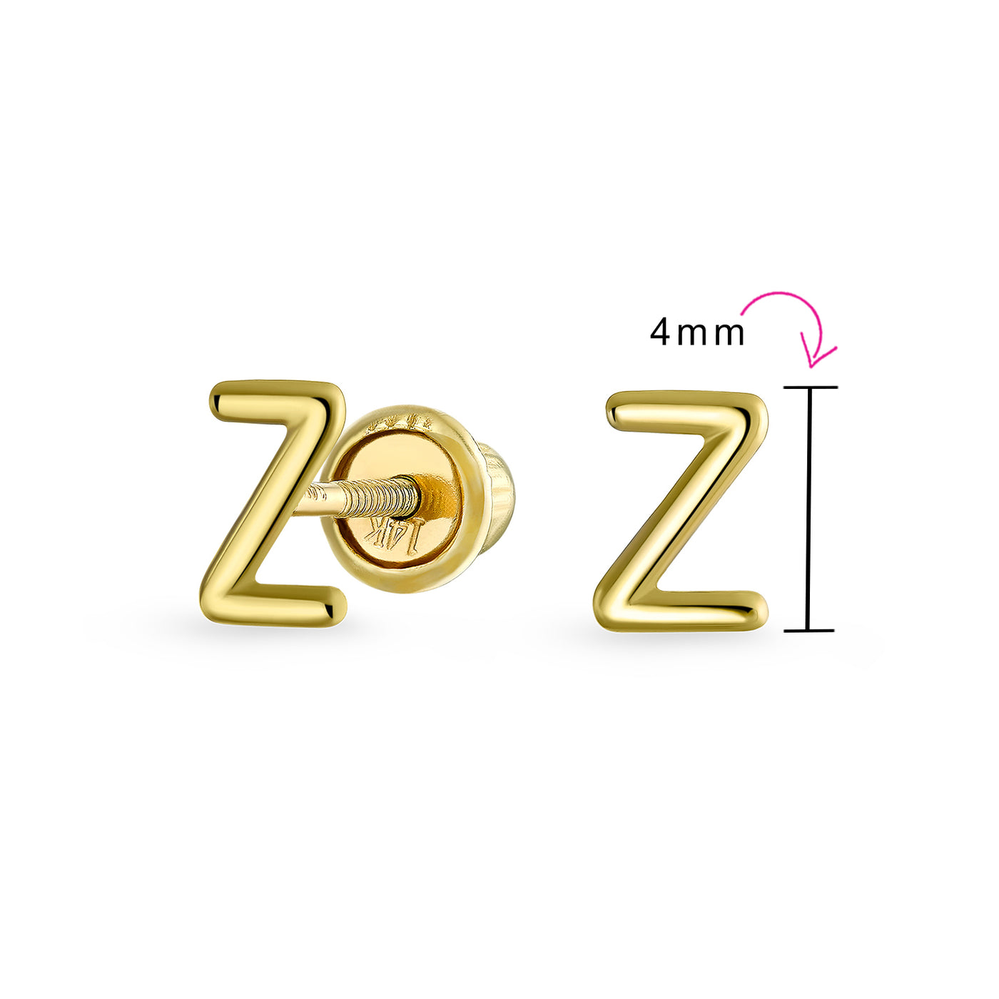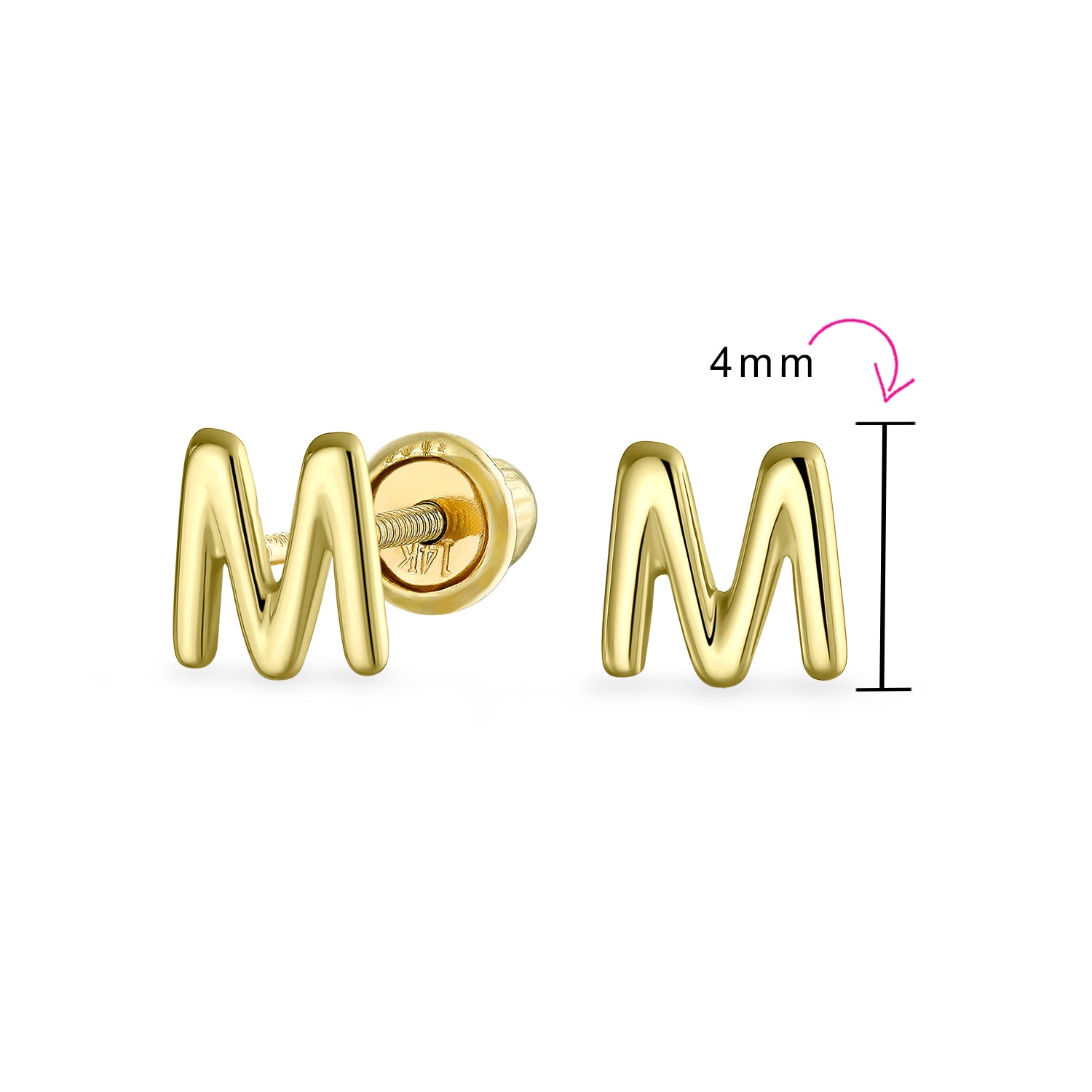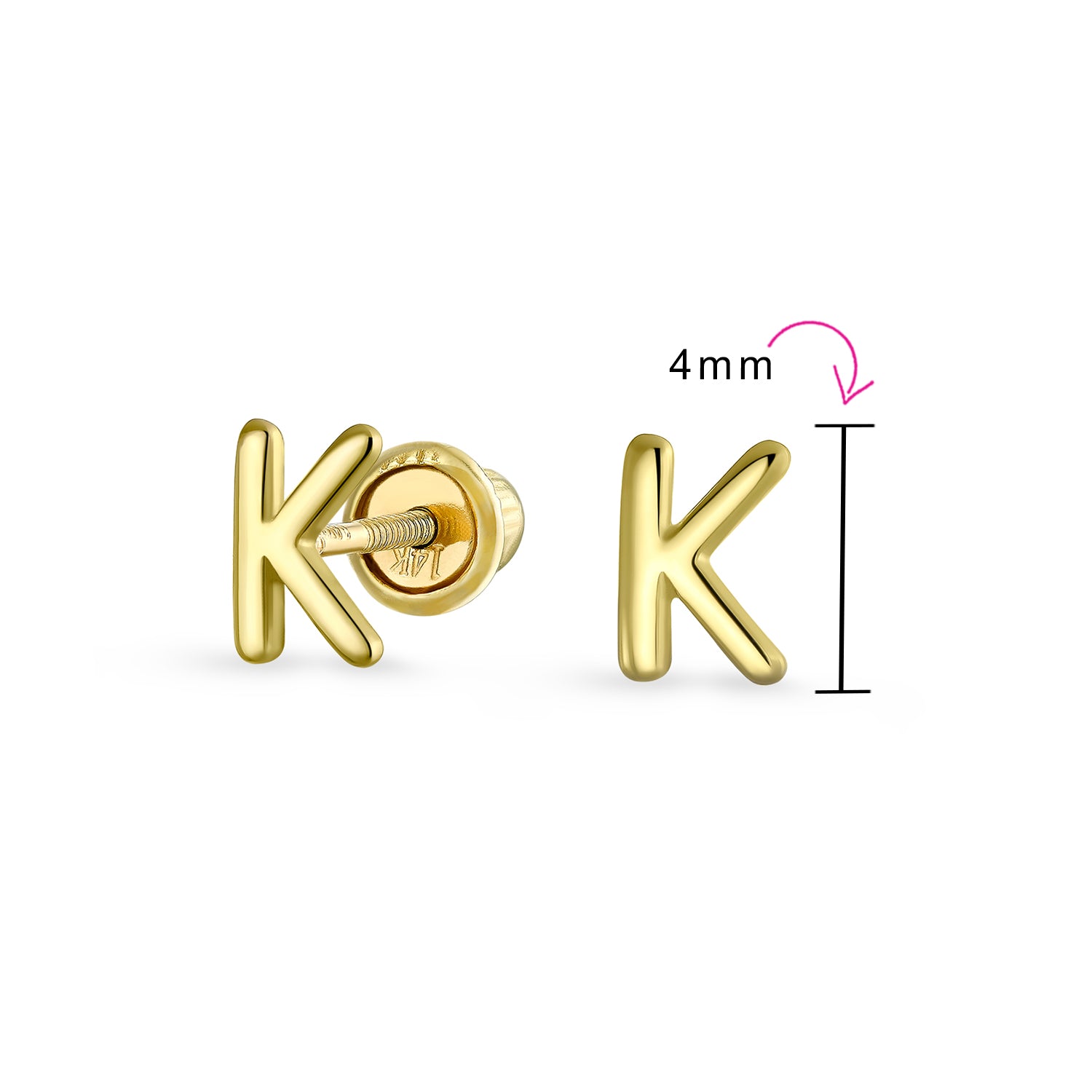 - Stay trendy with our modern letter initial earrings. Adorn your chic lobes with shiny 14K Gold alphabet letters. Personalize your look and celebrate individuality. Get your 14K Gold earrings for women today!